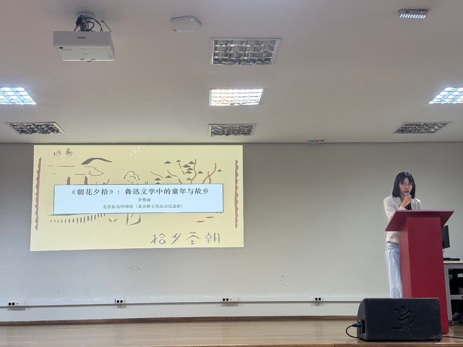 在开幕当天,北京鲁迅博物馆学者李紫璇带来了专题讲座《〈朝花夕拾〉:鲁迅文学中的童年与故乡》。她以深入浅出的讲述,带领巴西观众进入鲁迅的文学世界。李紫璇说,《朝花夕拾》是鲁迅唯一一部回忆散文集,但它不仅是一部散文集,更是一部中国社会的“百科全书”。它以温情的笔触追忆童年与故乡的风物人情,又以深邃的思考映照出鲁迅中年时期对人生与社会的洞察。她表示:“鲁迅通过回忆与现实的交织,让我们看见一个在动荡时代中仍坚持以文字守护人性光亮的作家。”
