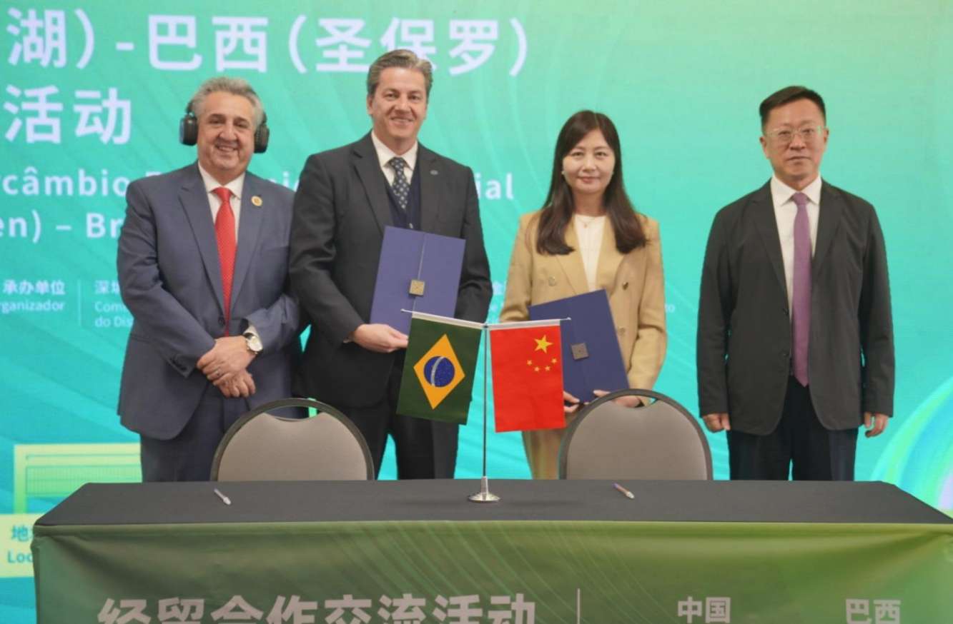 活动现场举行了合作签约仪式。深圳市罗湖区金融服务署与巴西国家服务业联合会签署合作协议,双方将在现代服务业、科技创新及金融交流等领域建立长效合作机制。此次签约标志着罗湖区与巴西工商界的合作迈上新台阶,也为未来在资本市场互联、金融科技创新及产业投资合作等领域奠定了坚实基础。