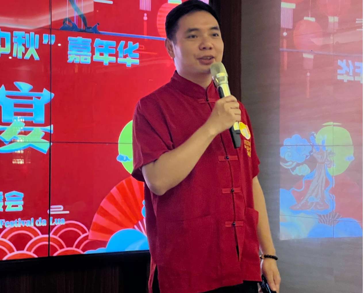 晚宴由主持人林安娜与张迦国共同开场。两位主持人首先分享了自己在为期两天活动中的感受与难忘瞬间,感谢所有幕后团队与义工的辛勤付出。随后,全场共同观看了“欢聚中秋”活动回顾视频,重温了文艺表演、文化摊位、美食展销、武术展示等丰富多彩的画面。