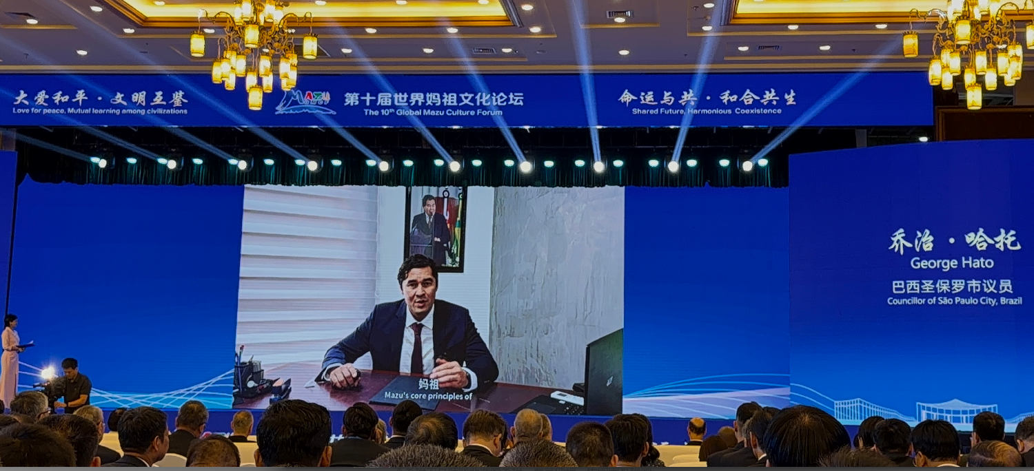 活动伊始,会场播放了来自中国湄洲岛主论坛的盛况视频,展现了妈祖文化在全球的蓬勃生机。更值得一提的是,圣保罗市议员George Hato的致辞视频也在主会场进行播放,实现了跨越东西半球的双向互动,生动体现了“命运与共”的论坛主题。