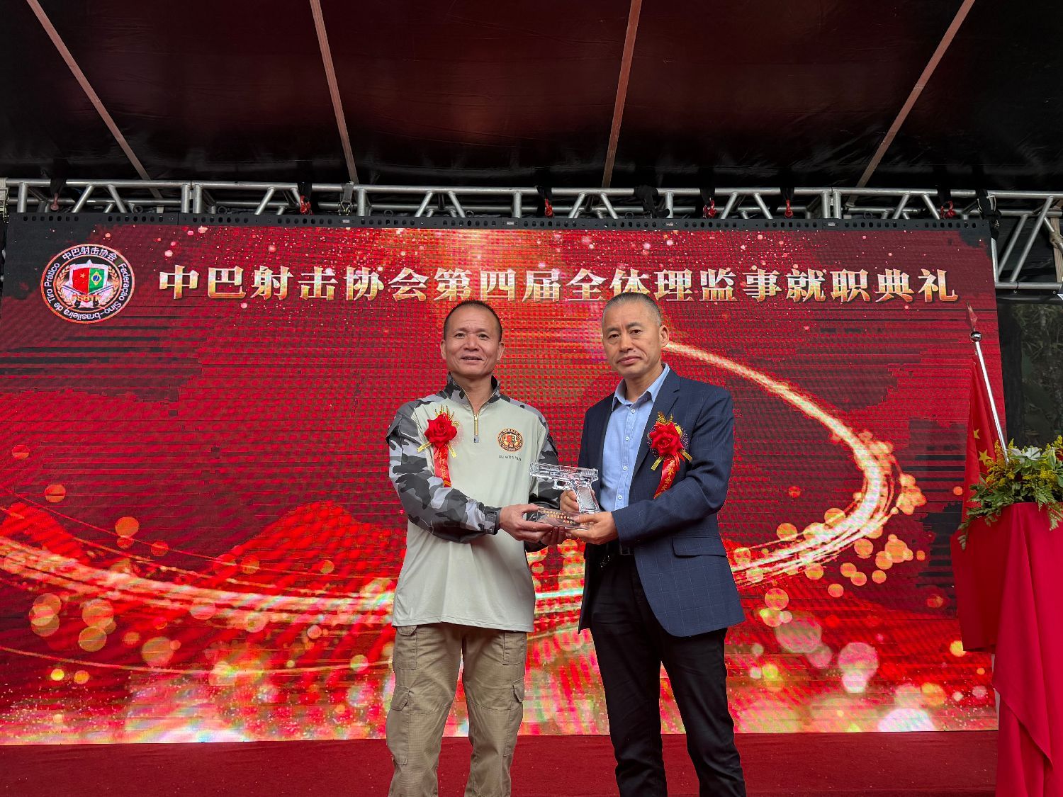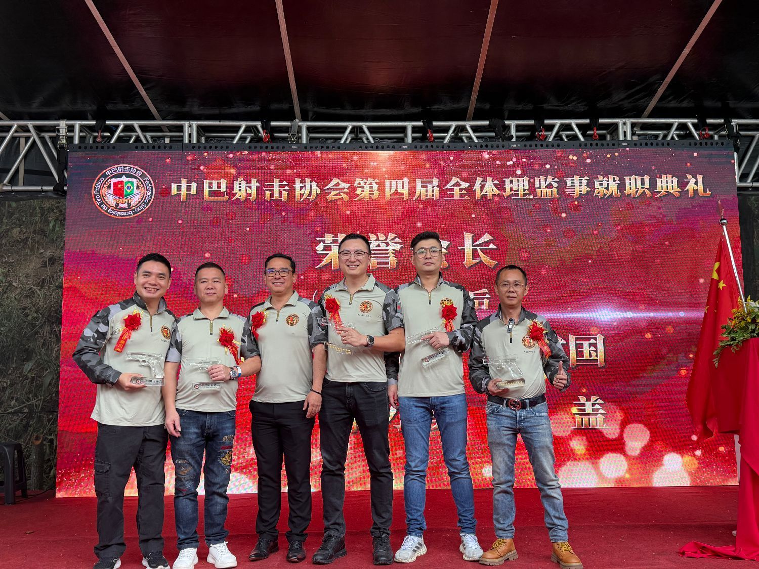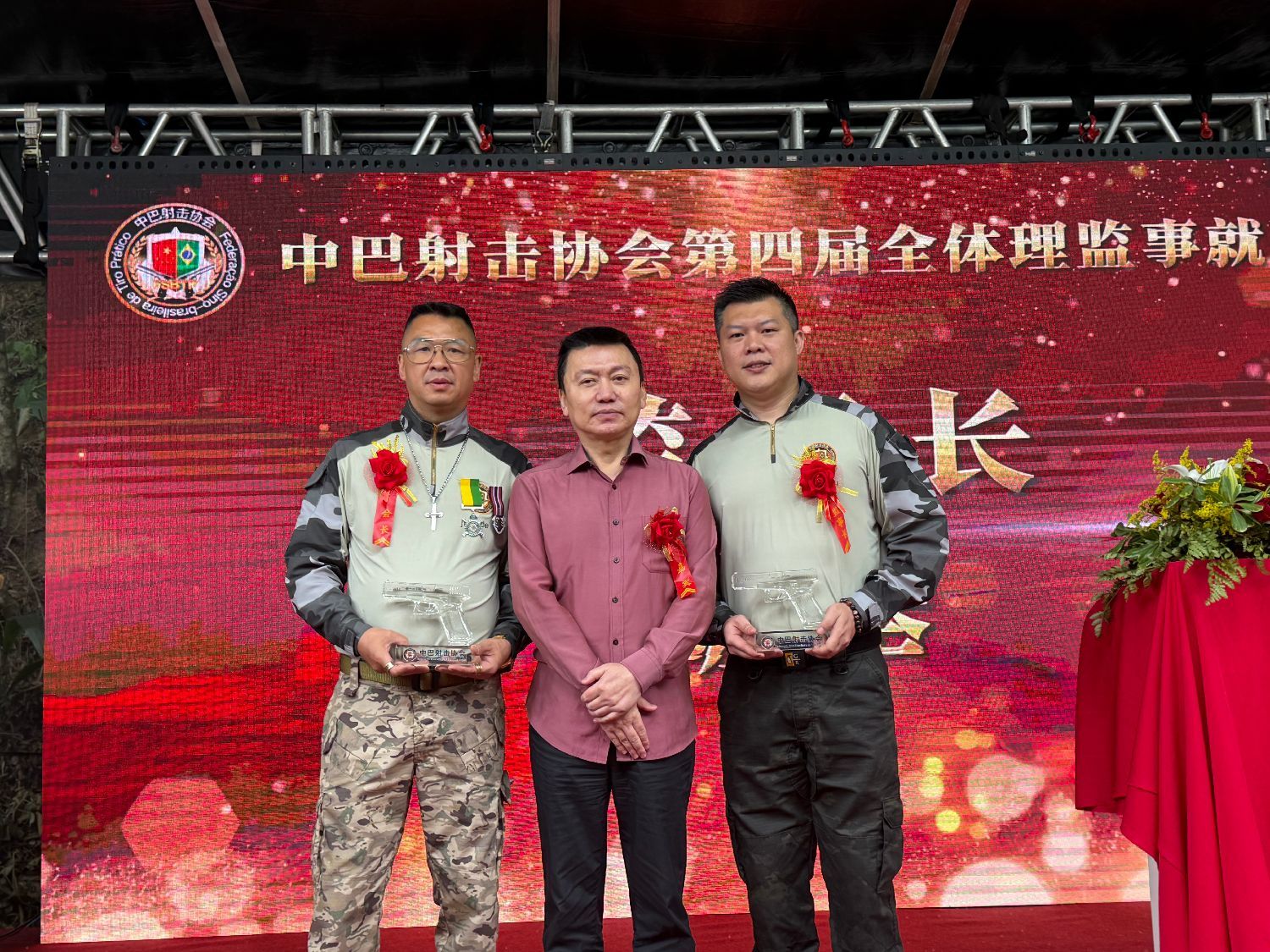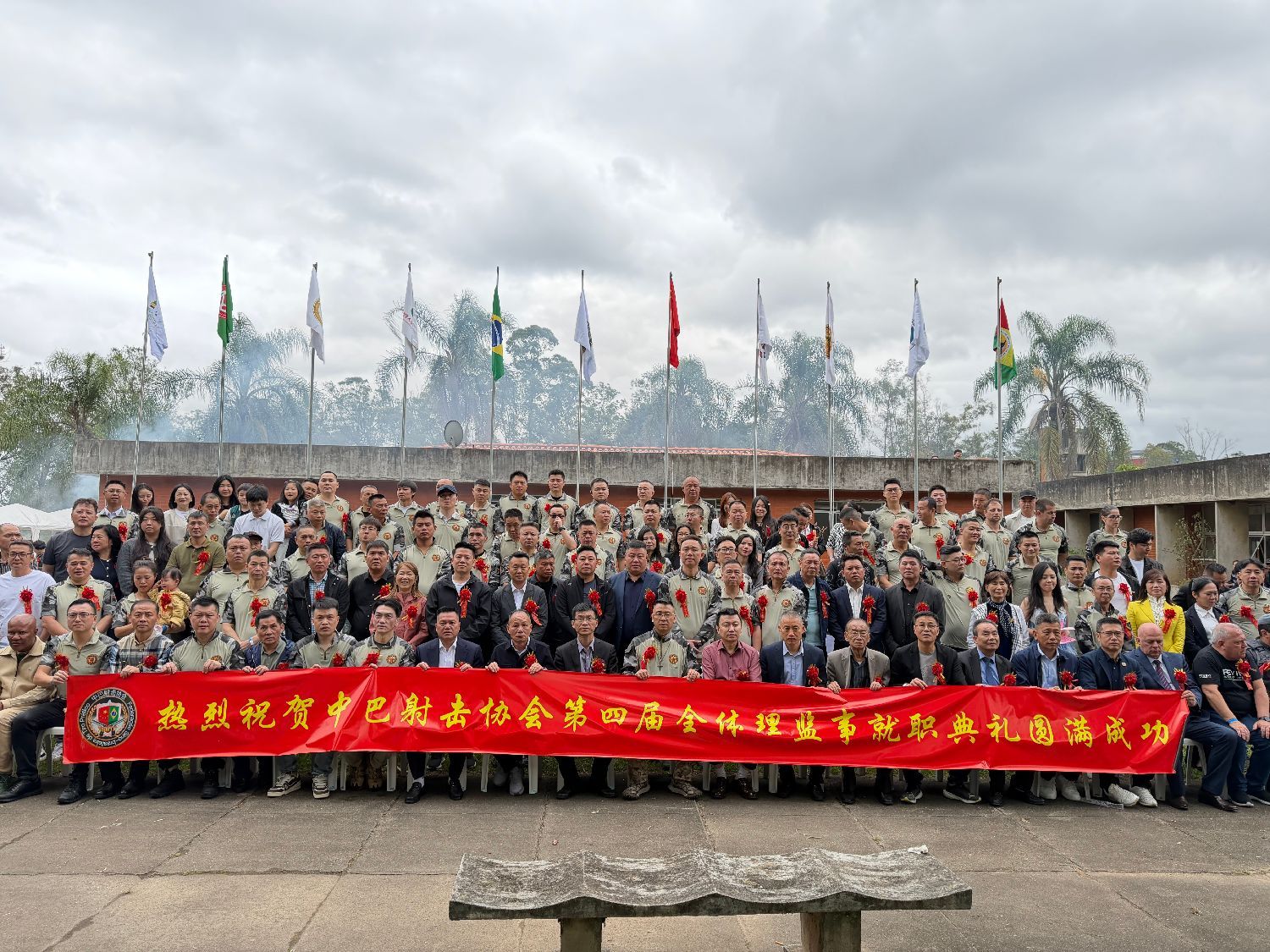 【南美侨报特约记者庄沂圣保罗报道】11月9日,巴西中巴射击协会第四届理监事就职典礼在瓜鲁柳斯射击俱乐部隆重举行。中国驻圣保罗总领馆领侨处主任荣强、侨务领事李晓明、瓜鲁柳斯市议员热莱亚、米内鲁,圣保罗市议员乔治哈托议员办公室主任罗伯特,瓜鲁柳斯射击俱乐部负责人埃德马尔、巴西华人协会会长叶周永、中巴射击协会会长林旭、新任会长季奇德、监事长陈举、理监事成员及圣保罗侨社代表800多人齐聚一堂,共同参与活动。