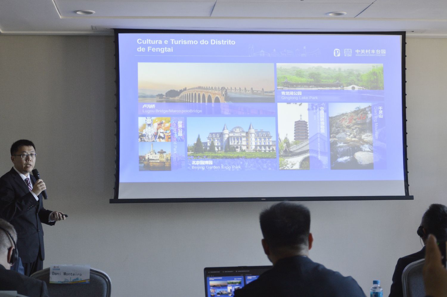中关村科技园区丰台园管委会副主任杨俊,介绍了园区发展优势与合作机遇。丰台区是北京市主城区之一,区内拥有卢沟桥、莲花池等丰富的历史文化与自然景观。交通体系发达,七条高速公路通达全国,九条地铁线路贯穿全区,丽泽与草桥航站楼为中外往来提供了便捷的国际机场连接。