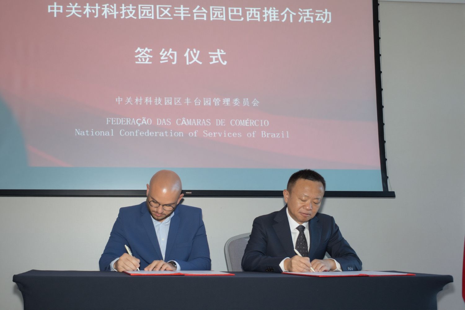 推介会结束后,活动进入签约与揭牌环节。北京市丰台区与里约热内卢州南帕拉伊巴市、里约热内卢市大提茹卡区正式签署友好城市协议,中关村丰台园分别与巴西国家服务业联合会、巴西对外贸易联合会签署合作协议并揭牌设立巴西圣保罗、里约离岸中心。多家中巴企业机构也同步签署合作项目。