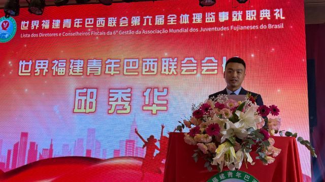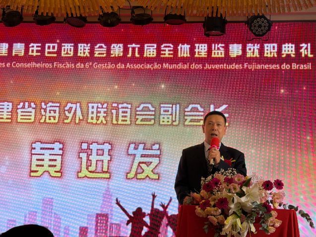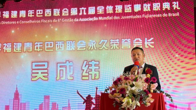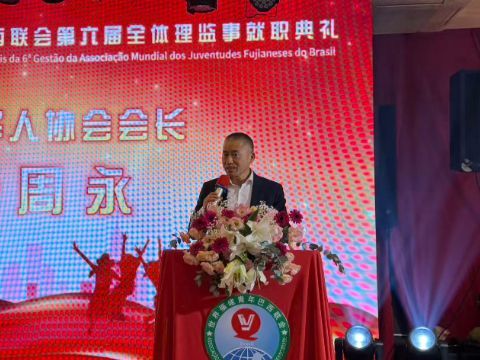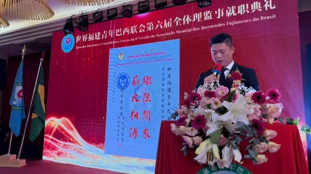 【南美侨报特约记者庄沂圣保罗报道】11月16日,世界福建青年巴西联会第六届理监事会就职典礼在圣保罗北京饭店隆重举行。福建省海外联谊会副会长黄进发率代表团莅临庆典。中国驻圣保罗总领馆领侨处主任荣强、侨务领事李晓明,巴西联邦众议员Paulo Pereira da Silva、圣保罗州刑事警察局局长Ivalda Oliveira Aleixo,巴西华人协会会长叶周永、世界福建青年巴西联会第五届会长吴成纬、新任会长邱秀华及圣保罗侨社代表、各界嘉宾与联会理监事成员齐聚一堂,共同见证这一重要时刻。