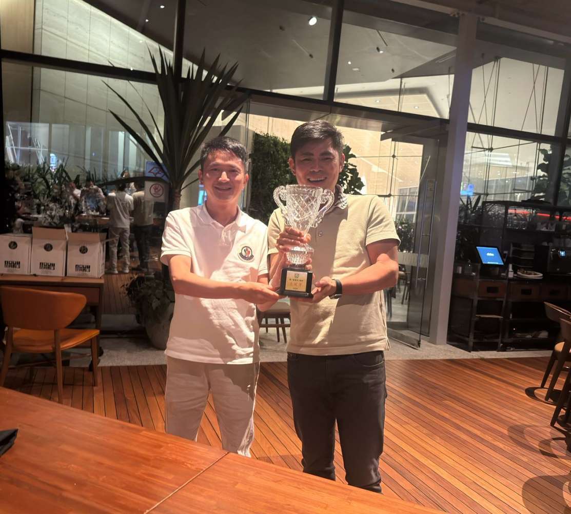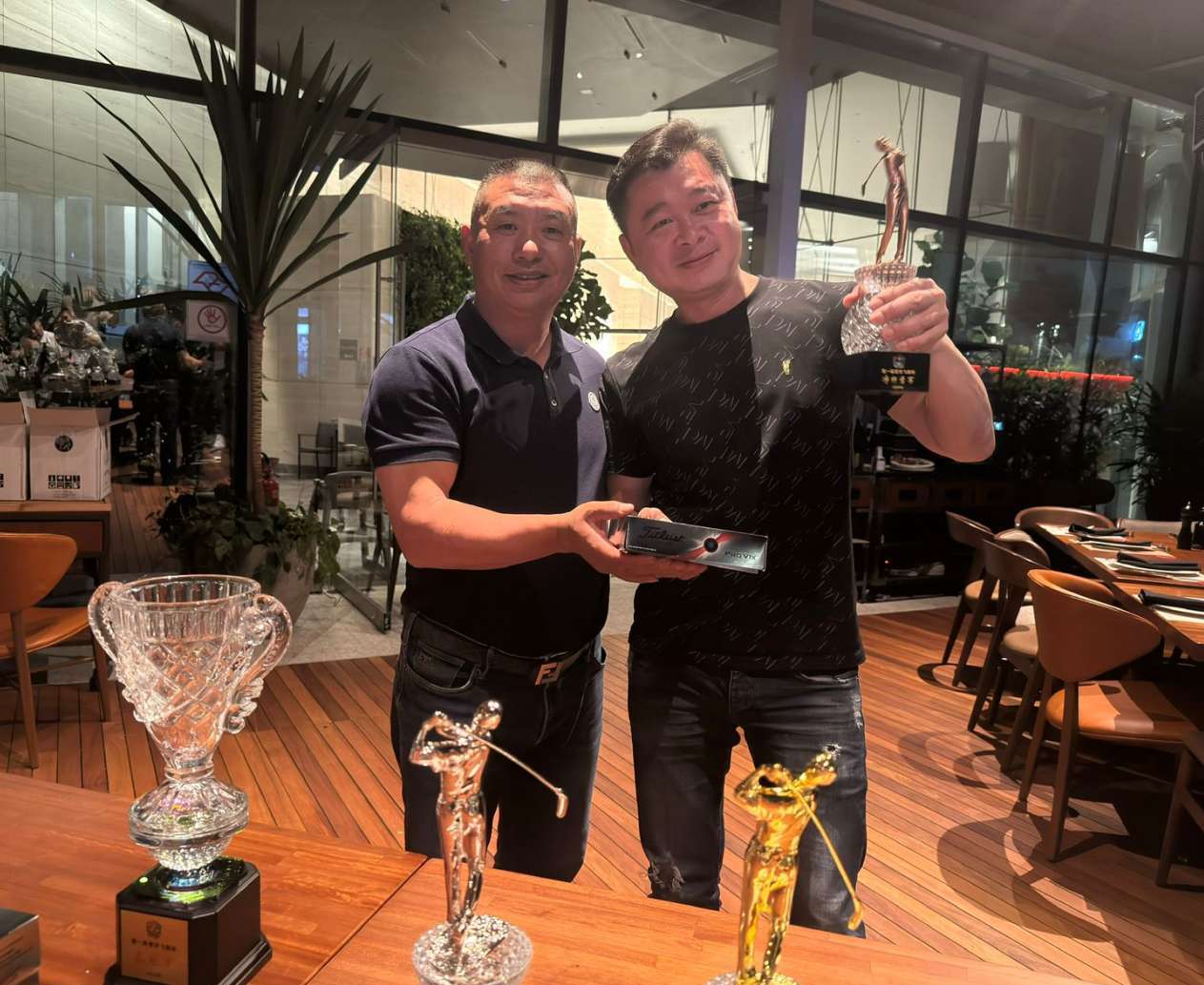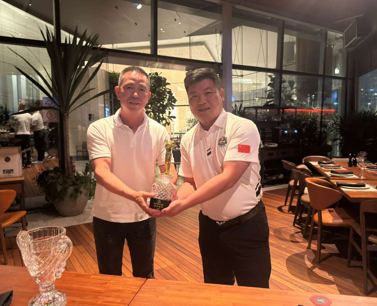 吴策(右)为陈国军(左)颁发净杆亚军奖杯