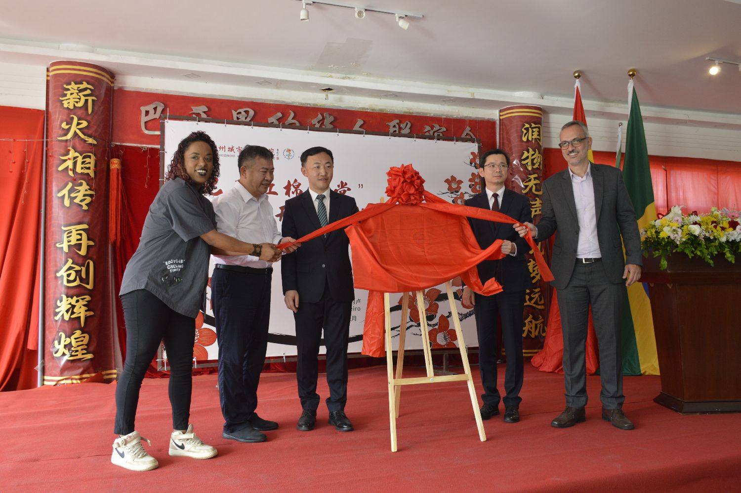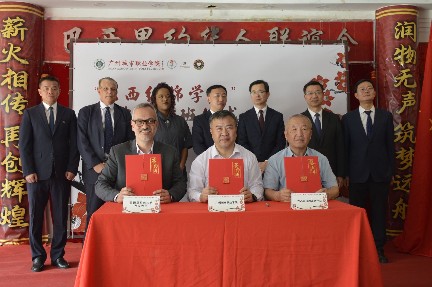 活动最后,广州城市职业学院、里约热内卢州立大学及巴西里约华人联谊会正式完成签约。随后的揭牌仪式将现场气氛推向高潮,“巴西红棉学堂”正式亮相。
