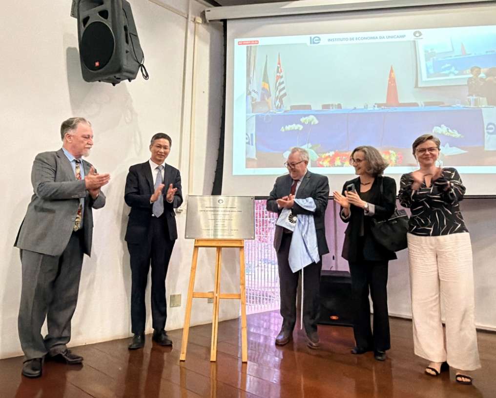 【南美侨报特约记者邹颖坎皮纳斯报道】2025年11月26日上午,坎皮纳斯州立大学(以下简称坎大)巴西中国跨学科研究中心(以下简称中心)揭幕仪式在坎大经济学院举行,该中心的成立标志着坎大在中巴学术交流与合作方面又迈出重要一步。坎大校长Paulo Cesar Montagner,中国驻圣保罗总领馆总领事余鹏、副总领事张希,巴西外交部亚洲与太平洋事务司司长Susan Kleebank,坎大跨学科研究中心和核心协调处主任Raluca Savu,国际处处长Rafael Dias,中国研究中心主任Rachel Meneguello,巴西中国跨学科研究中心主任Tom Dwyer,经济学院院长Célio Hiratuka,孔子学院中方院长高沁翔,巴方院长Ana Elisa Spaolonzi Queiroz Assis和各学院师生代表,以及巴西中国和平统一促进总会会长李锦辉,中巴文化交流协会会长李正斌,比亚迪巴西公司,国网巴电CPFL公司代表等社会各界人士近百名共同见证这一重要时刻。中国驻巴西大使祝青桥通过视频方式发表贺辞。