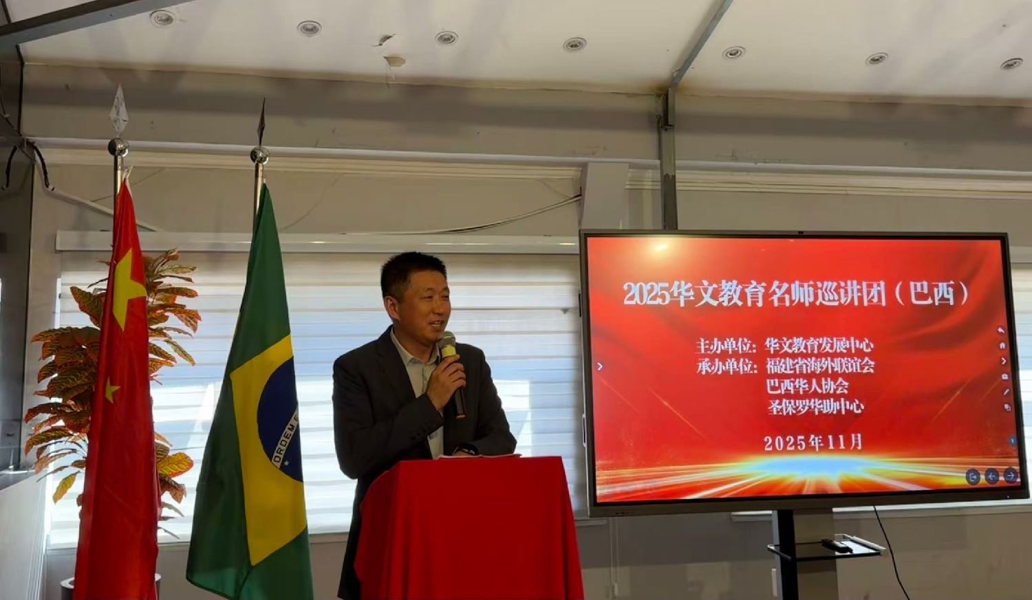 【南美侨报特约记者庄沂圣保罗报道】11月29日,由华文教育发展中心主办,福建省海外联谊会、巴西华人协会圣保罗华助中心联合承办的“2025年华文教育名师巡讲团”中文教师培训活动,在巴西青田同乡总会会馆圆满举办。本次培训吸引了巴西幼华双语学校、德馨双语学校、华侨天主堂中文学校、圣本笃学校、慈佑学校、天天华侨教育学校、弘恩双语学校、Colegio Elim及FAAP孔子学院等机构的近百名中文教师参与,为圣保罗华文教育发展注入了新动能。