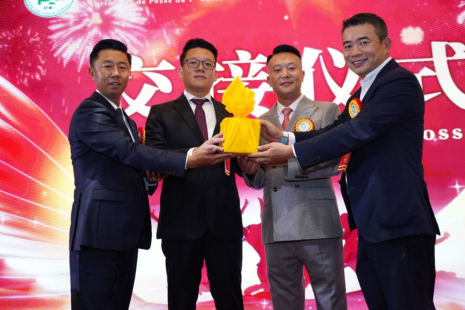 就职典礼上,谢炎村副总领事、荣强主任、李晓明领事,先后为邱垚伟会长、魏黎监事长、温鸿翔秘书长颁发了就任证书。