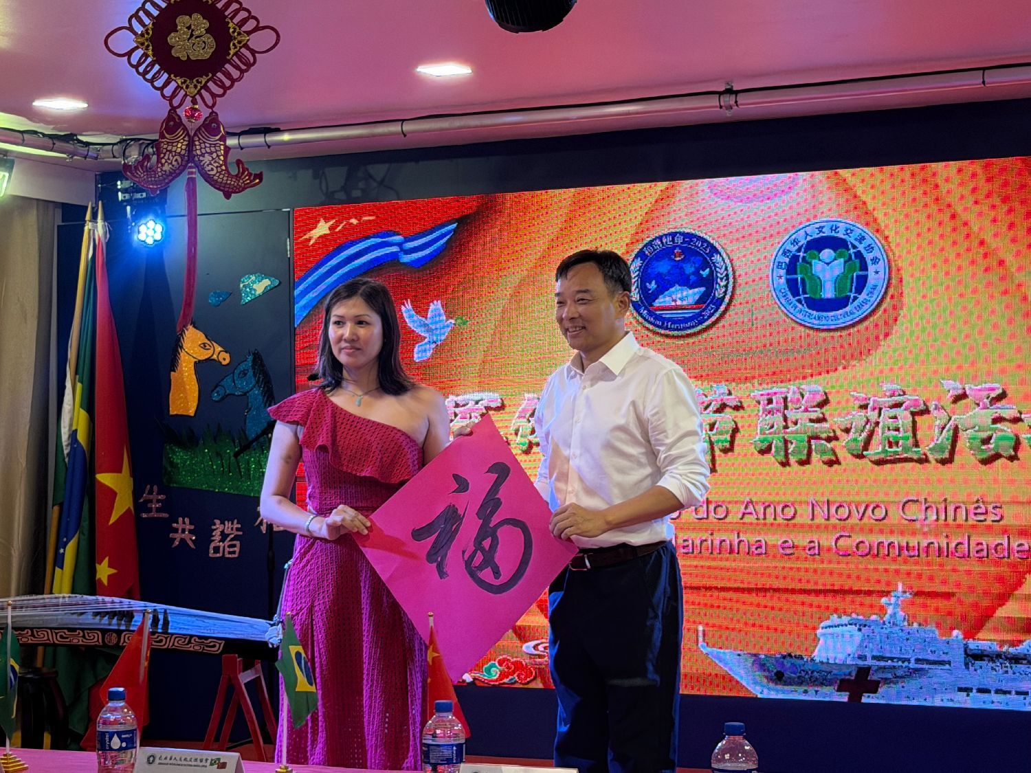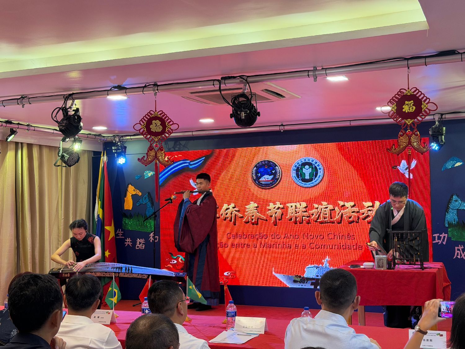 【南美侨报特约记者陈妤汎里约热内卢报道】1月12日,巴西华人文化交流协会会馆内热闹非凡,由协会与“丝路方舟号”联合举办的军侨春节联欢会在掌声中拉开帷幕,为旅巴军人及侨胞送上浓浓的年味与祝福。活动当天,“丝路方舟号”指挥长方劲松、中国驻里约热内卢总领馆总领事田敏、巴西华人文化交流协会主席上官建峰等领导和嘉宾到场出席,里约侨界代表及巴西友好人士也应邀参加。