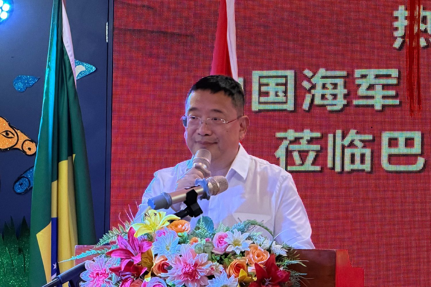 在致辞中,上官建峰表示,“丝路方舟号”承载着和谐使命,带着祖国牵挂远航拉丁美洲,以医者仁心践行人类命运共同体理念,是流动的中国名片,更是海外侨胞的底气与骄傲。两百年来,华人华侨在巴西扎根生长,既是中巴友好的见证者,更是文化交流的桥梁与纽带。祖国军舰披风斩浪而来,让侨胞们真切感受到祖国在身边、军人在身旁的坚实力量。