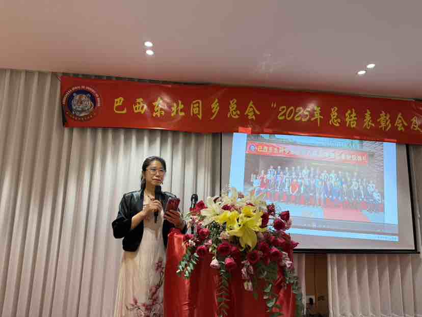 活动在喜庆祥和的氛围中拉开帷幕。李晶会长首先发表热情洋溢的致辞。他代表东北会向总领馆、华协及各界的关心支持,以及全体理监事和乡亲的辛勤付出致以衷心感谢和新春祝福。李晶回顾了第六届理监事就职以来,总会在合法化注册、服务侨胞、奉献社会、促进文化交流以及搭建中巴经贸桥梁等方面取得的扎实成绩。他列举了帮助困难老乡回国、为意外身故同胞料理后事并转交善款、为国内病童发起募捐、在巴西南大河州洪灾及圣保罗火灾时迅速组织赈济等感人实例,展现了东北侨胞守望相助、勇担责任的精神风貌。在文化领域,东北会连续三年协办“巴西华人华侨庆中秋”大型活动,并组织特色节目演出,积极传播中华优秀传统文化。李晶表示,未来总会将继续秉持创会初心,服务乡亲,凝聚侨力,为推动中巴友好与家乡建设贡献力量。