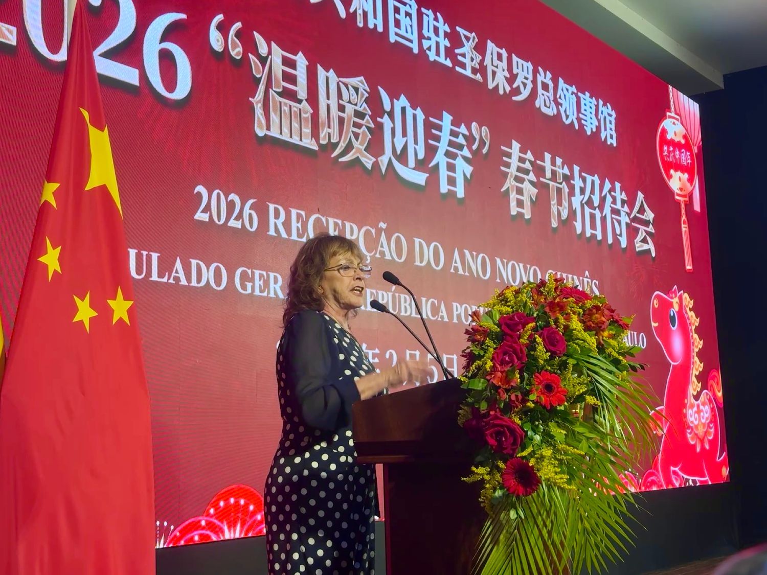 圣市国关局局长甘德拉在致辞中表示,中国新年已深深融入圣保罗城市生活。她回顾了去年访华经历,认为中国文化所蕴含的智慧值得深入学习,并强调文化交流是促进民心相通的重要纽带。