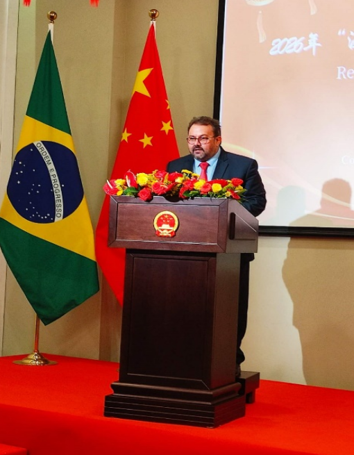 兰和平总领事首先致辞。代表总领馆对来宾表示热烈欢迎,祝福大家新春快乐,马年吉祥,马到成功。2024年,中国春节被列入联合国教科文组织人类非物质文化遗产.2026年中国农历新年与巴西狂欢节同一天,令人欣喜,为两国文化交融提供了很好的契机。,兰总向与会来宾介绍中国发展状况,2025年是收获的一年,经济运行稳中有进,名列世界前茅。东北部八州在经贸,农业,科技,文化,教育等领域交流合作也不断走深走实,包括伯州州长在内的多位州长副州长及专业人士,相继访华,积极开展交流合作,造福两国人民。2026年,中国将继续推动现代化进程,将与巴方共同努力,实现互利共赢,推动双边关系,迎接更加美好未来。2026年是中巴文化年,两国将以文化为契机,通过丰富多彩的文化交流活动,让两国人民走得更近,心贴得更紧,继续加深友谊及合作。马年象征奋进开拓与担当,驻累西腓总领馆愿与大家一起,携手前行,并肩奋进,共享发展成果,共享美好的明天。