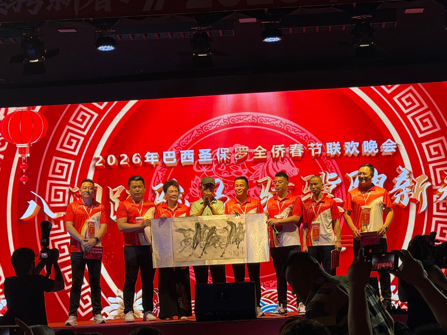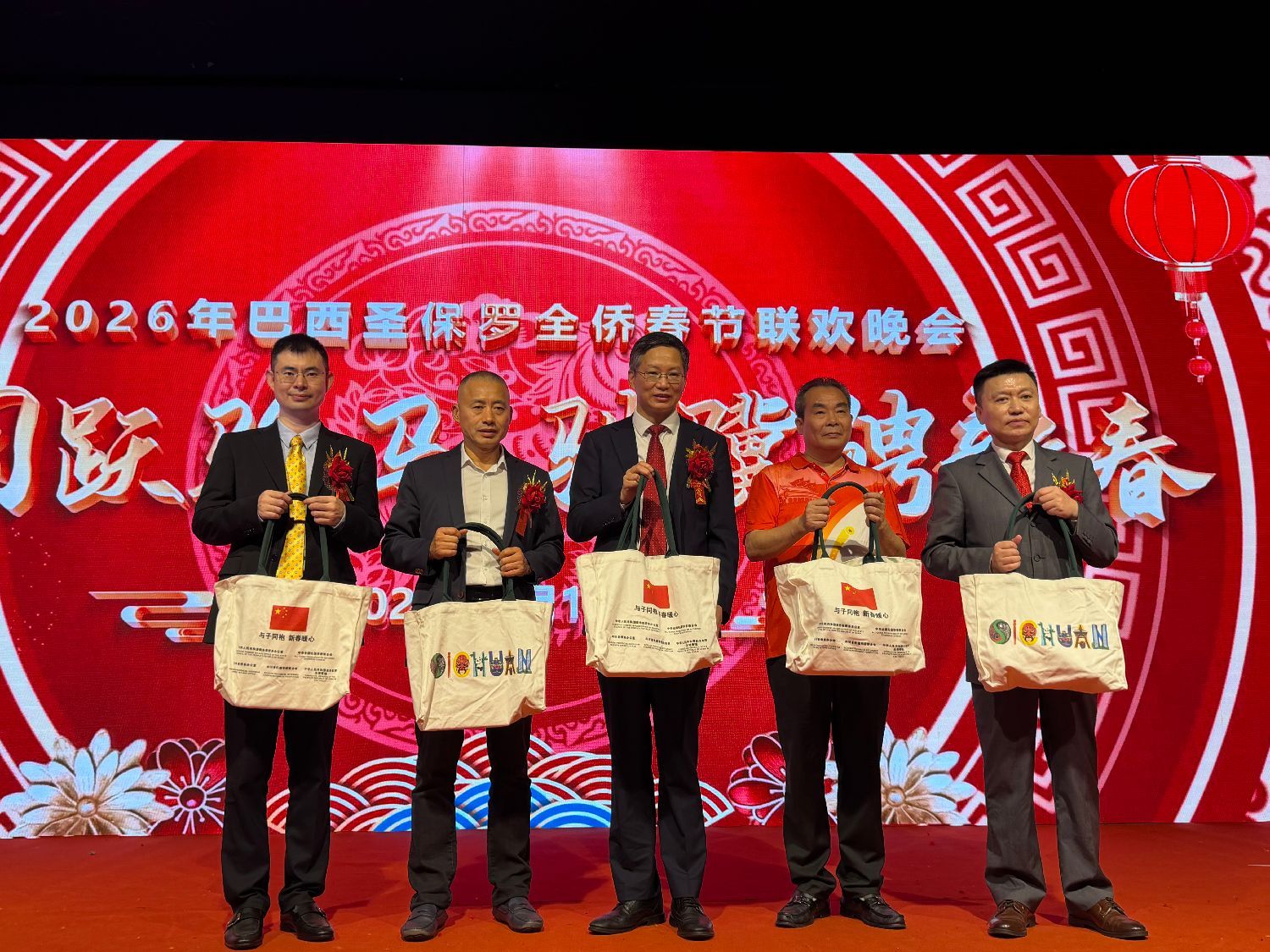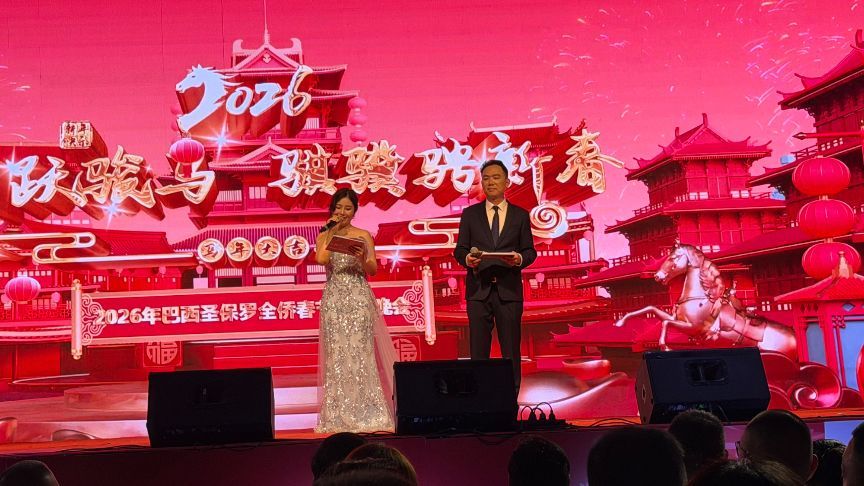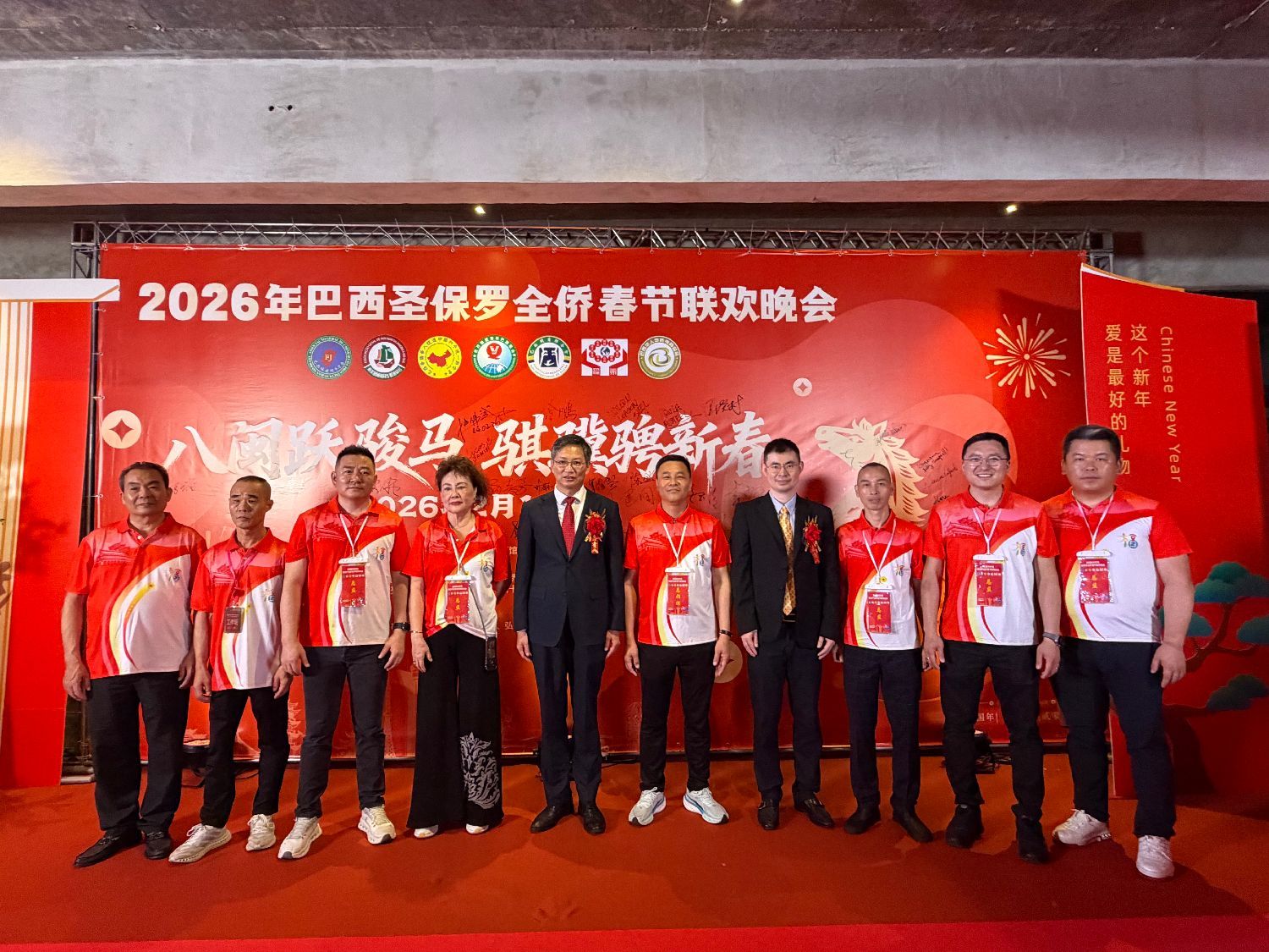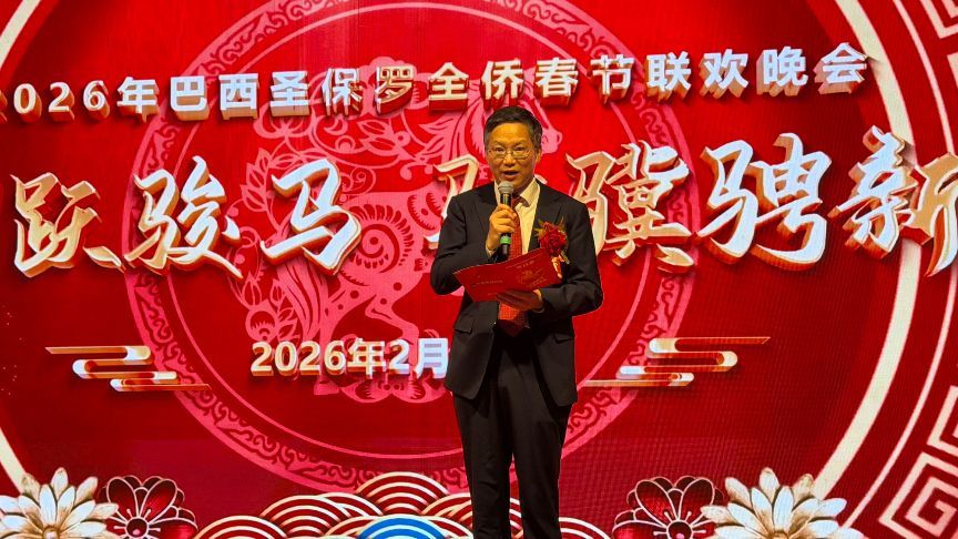 中国驻圣保罗总领事余鹏在致辞中向广大侨胞致以新春问候。他表示,过去一年中国式现代化建设稳步推进,中巴务实合作成果丰硕。圣保罗作为中巴交流的重要窗口,见证了两国经贸往来与人文互动的持续深化。2026年既是农历马年,也是“中巴文化年”开局之年,象征奋进与希望。他寄语侨胞继续做中巴友谊的推动者、民族复兴的参与者、侨社团结的守护者,以“一马当先”的精神共创新局。