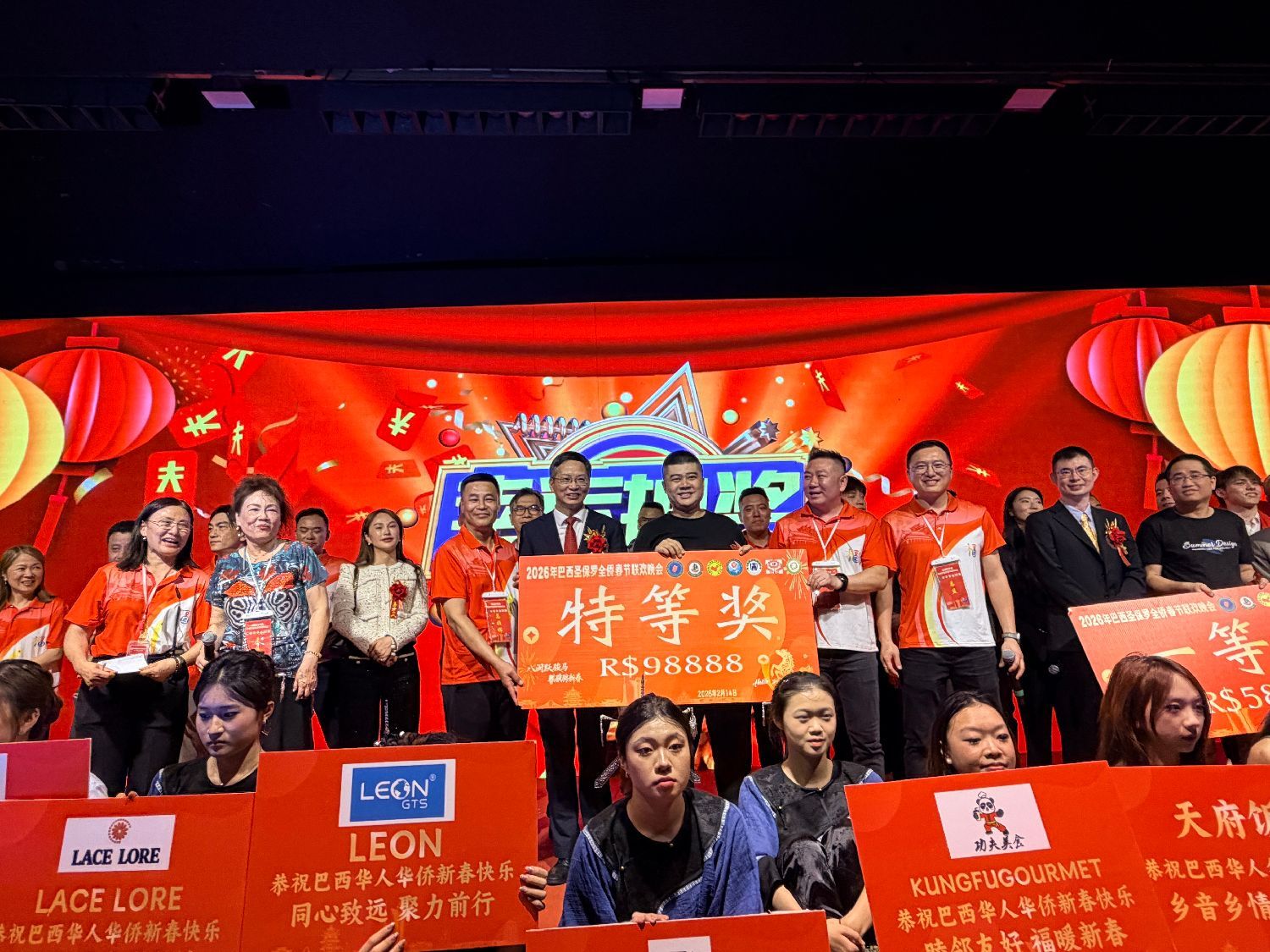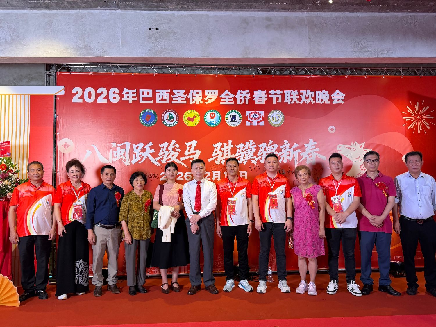 【南美侨报特约记者庄沂圣保罗报道】2月14日,由巴西七家闽籍侨团联合主办的2026年全侨春节联欢晚会在安年比艾布拉卡俱乐部(Clube A Hebraica)隆重举行。中国驻圣保罗总领馆、巴西各界嘉宾与三千余名侨胞欢聚一堂,共庆农历丙午马年新春。整场晚会以“八闽跃骏马,骐骥骋新春”为主题,在规模、规格与内容呈现上再创新高。