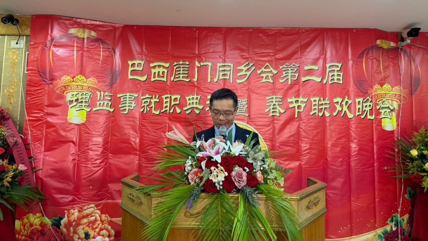 苏新效表示,崖门同乡会成立以来,始终秉持爱国爱乡、团结互助的优良传统,成为旅巴崖门乡亲连接故土、传递乡音的温暖家园。新一届理监事会汇聚经验与朝气,展现了继往开来、薪火相传的蓬勃生机。2026“骏马”到来,预示着同乡会必将以“龙马精神”驰骋出更广阔的新天地。他相信,在李长登会长及新班子带领下,同乡会必将承前启后,推动会务更上一层楼,为促进中巴友好与文化交流贡献新力量。