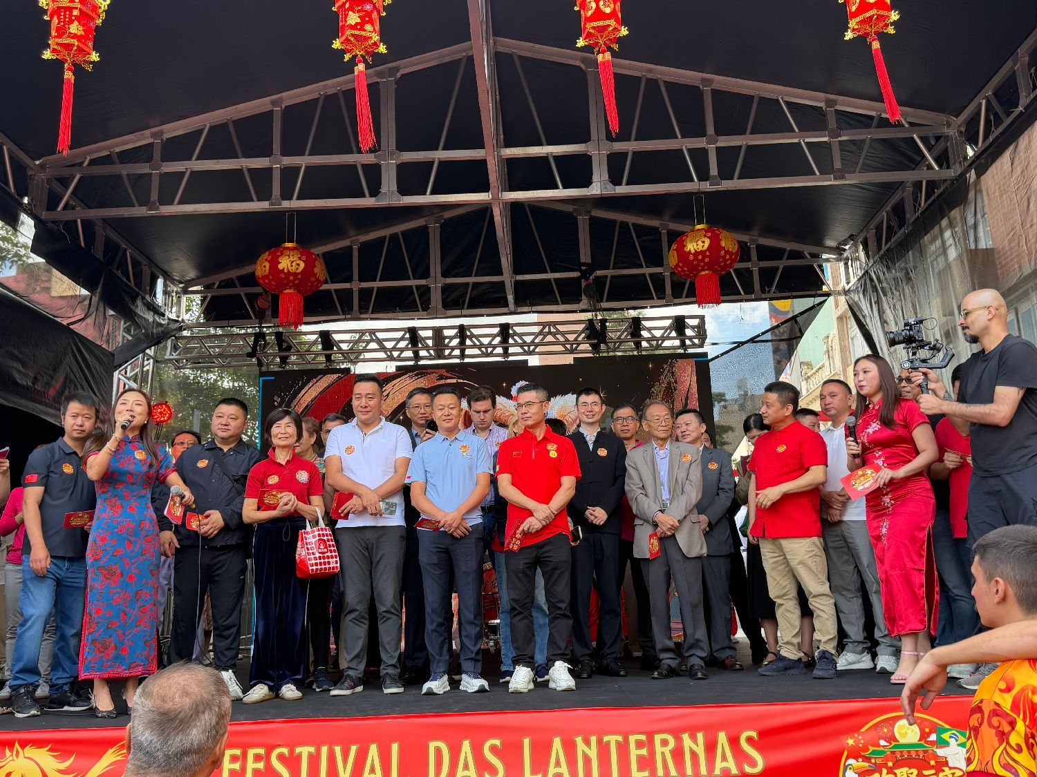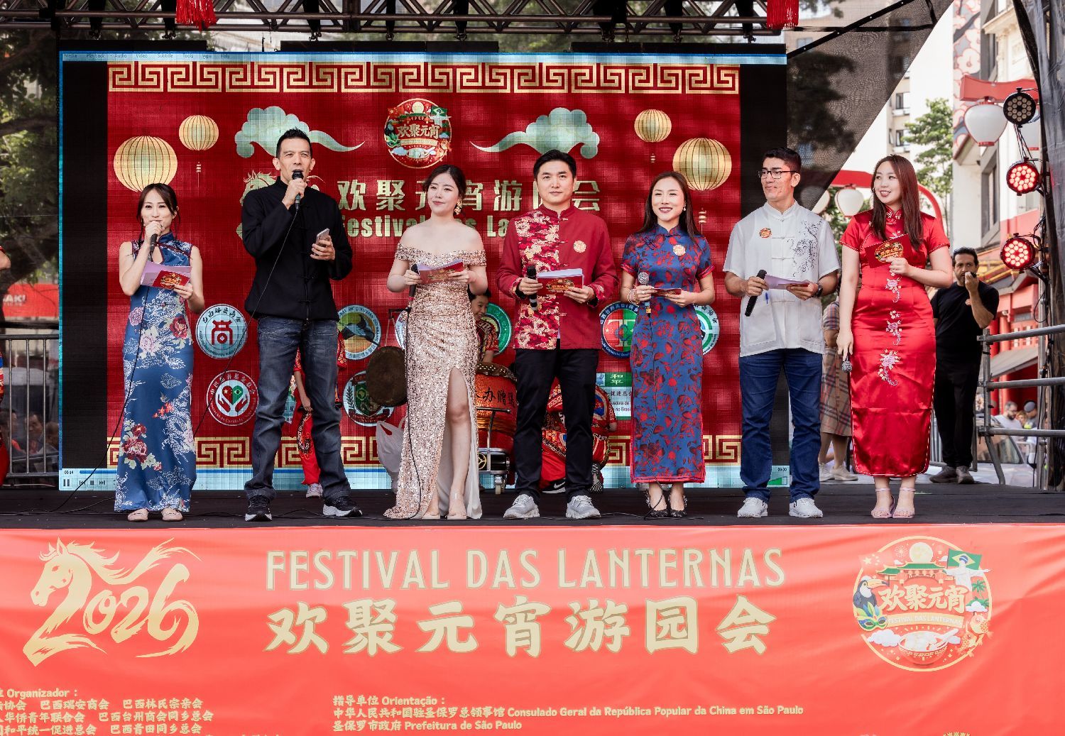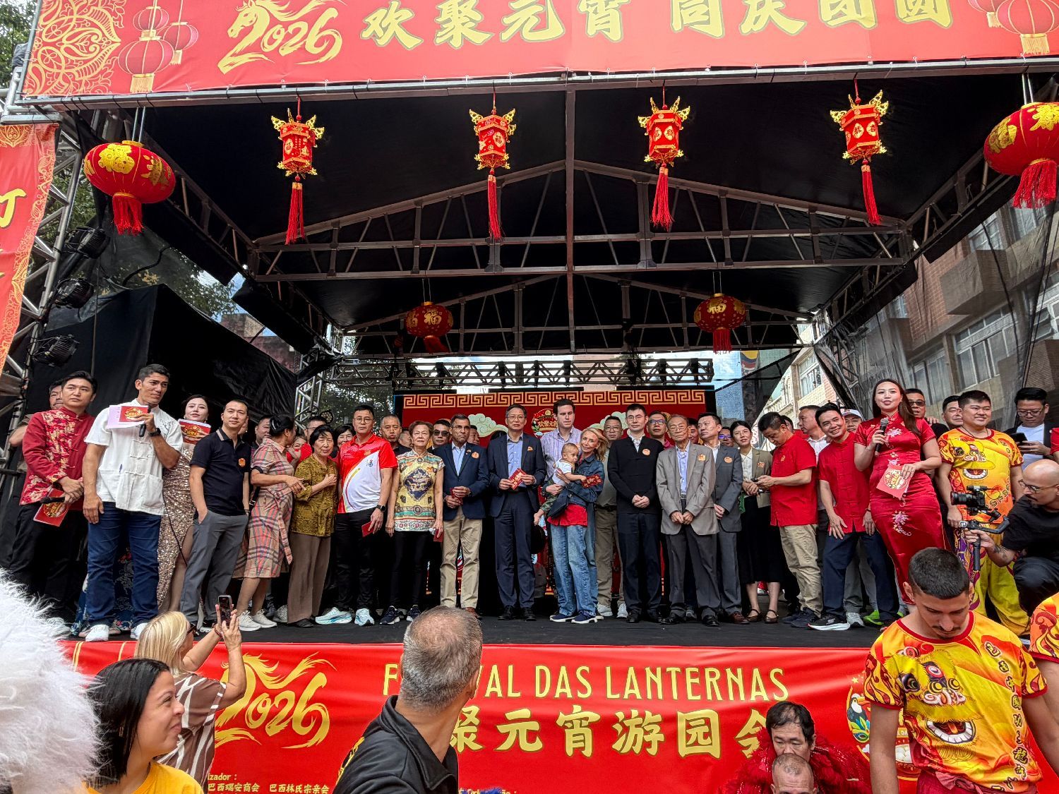 【南美侨报特约记者庄沂圣保罗报道】2月28日,圣保罗自由广场张灯结彩,洋溢着喜庆的节日气氛。由圣保罗多家浙籍侨团联合举办的“2026欢聚元宵”大型文化活动在此盛大举行。中国驻圣保罗总领事余鹏、圣保罗市议会议长乔治·奥热、市国际关系局局长安吉拉·甘德拉、市民政局局长恩里科·米萨西、巴西华人协会会长叶周永、监事长王万瑞、活动总召集人叶王永、主办侨团负责人张海群、季奇德、娄建权、林伟萍、邱垚伟、李锦辉、孙总敏、章晓红、郑贵勇、留永明、诸诗琦、吴凌云、李青霞、阮海东、周中、徐卫国、朱军勇及圣保罗华人华侨与巴西民众欢聚一堂,共庆元宵佳节。