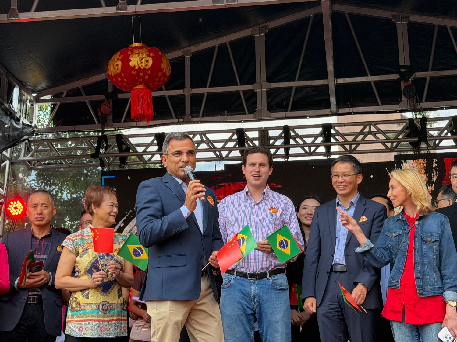 巴西华人协会会长叶周永在致辞中向中巴民众送上新春祝福,并生动介绍了元宵节的文化内涵。他表示,元宵节是海外华人的情感寄托,“看着眼前的红灯笼,听着亲切的中文问候,仿佛拉近了与故乡的距离。”