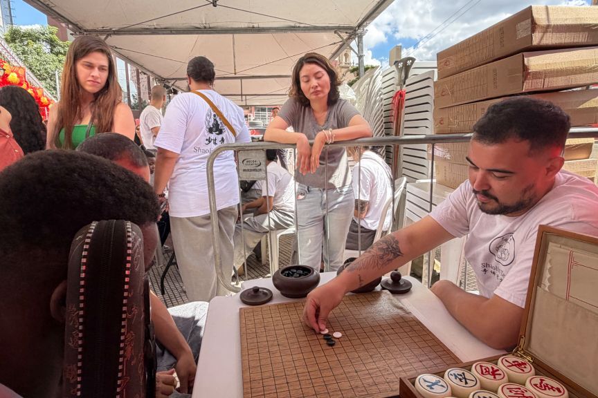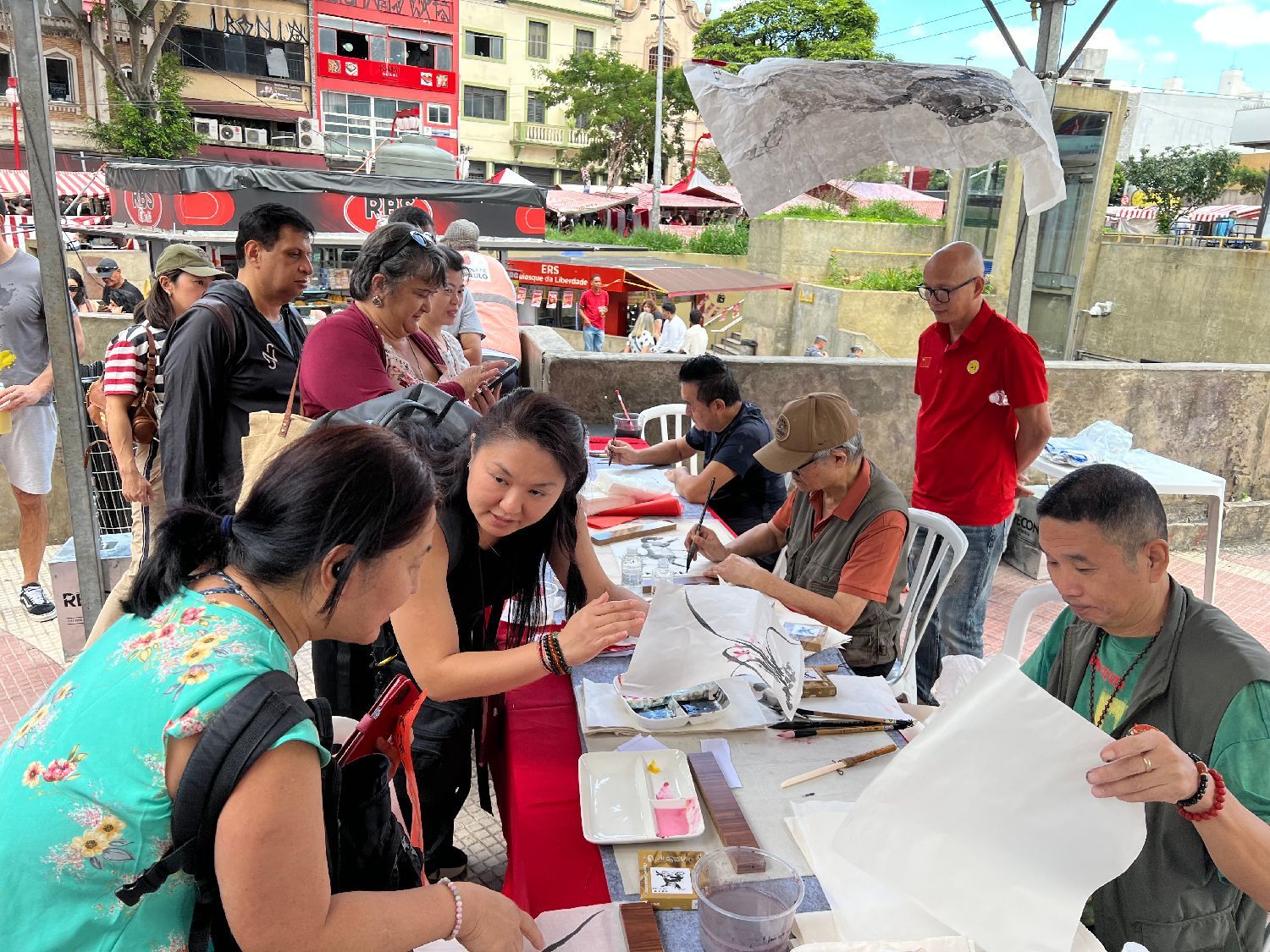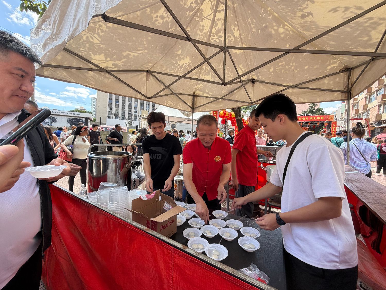 舞台之下,文化互动区同样热闹非凡。书法、中国结编织、围棋对弈、茶道表演吸引了众多巴西民众驻足体验。现场煮制的元宵热气腾腾,让巴西朋友们品尝地道的“中国味道”。