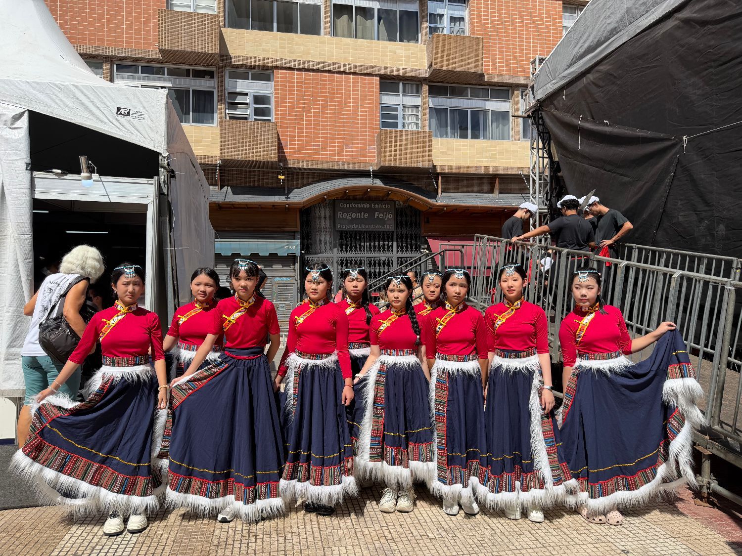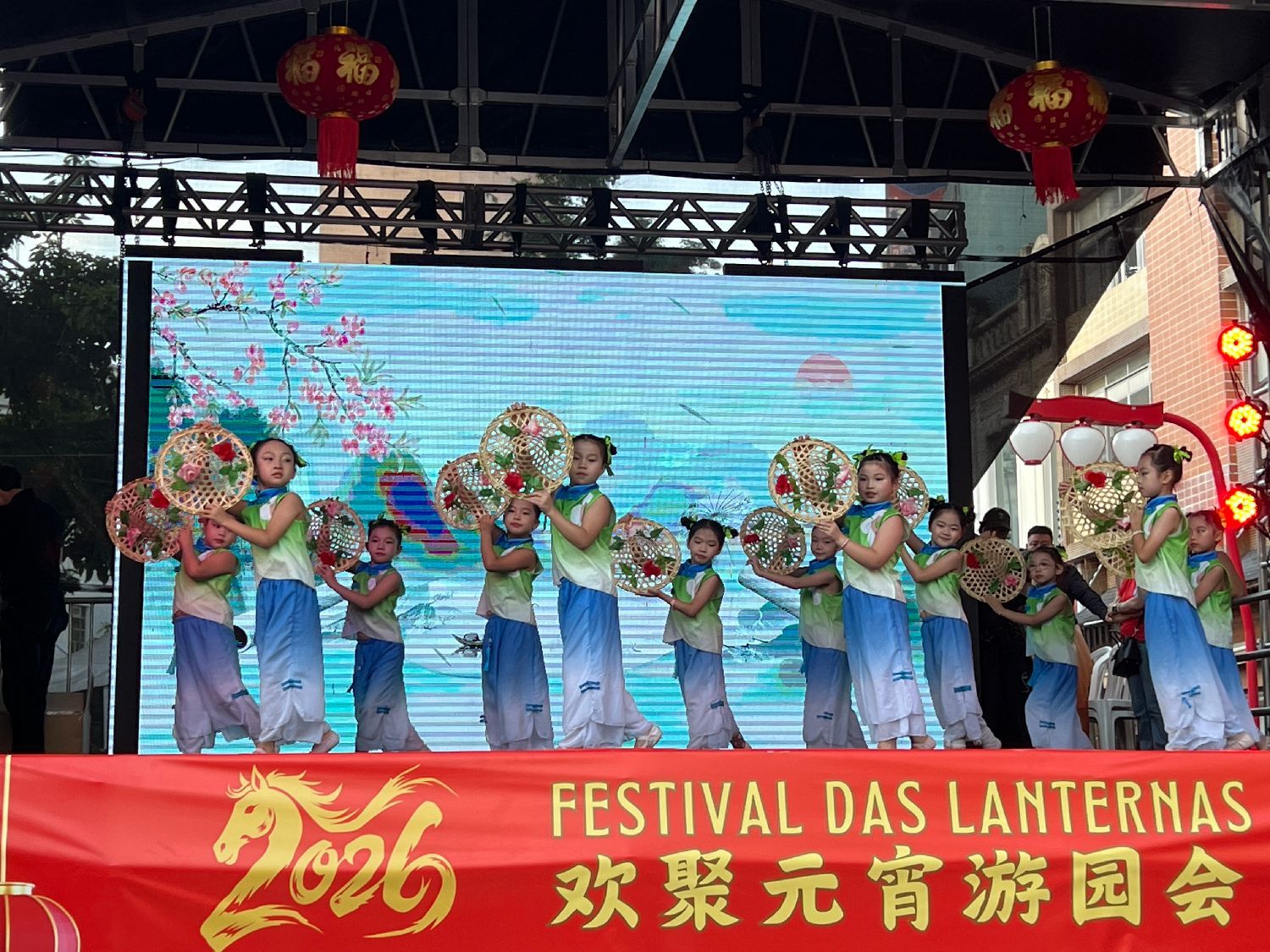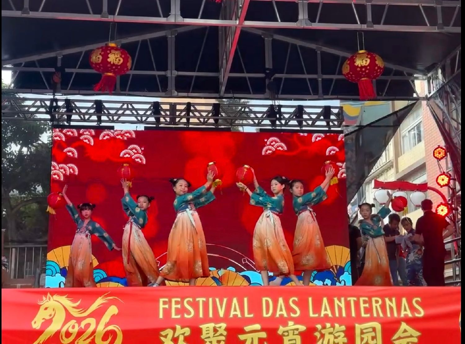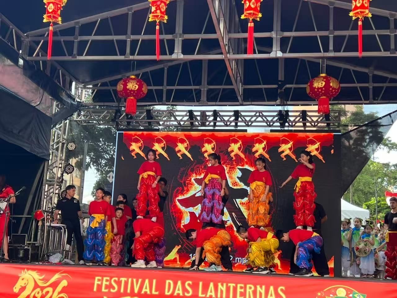 舞台之上,文艺节目从早到晚轮番上演,精彩纷呈。唐韵艺术团开场歌舞《新年好》拉开序幕,《咏春》《茉莉花》《苍穹颂》《爱的画卷》等作品展现中华舞蹈的多元魅力,少儿爵士舞《Baby Monster》则带来充满活力的青春气息。春江乐团献上民乐串烧,中巴旋律交融共鸣;华星艺术团的古筝合奏《青花瓷》清雅悠扬。巴西音乐学院学生演唱中文歌曲;“水立方”团队带来《流星花园》歌曲串烧;歌曲《醉拳》及吉他弹唱《世间美好与你环环相扣》,憨态可掬的少儿舞狮表演赢得阵阵欢笑。