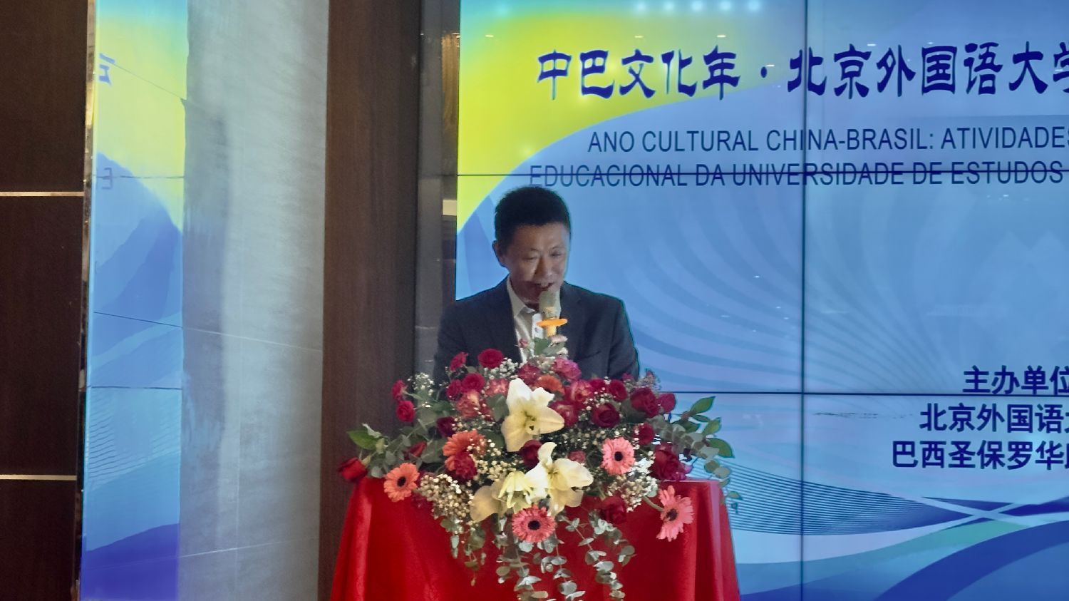 中国驻圣保罗副总领事谢炎村在致辞中代表总领馆对代表团一行表示热烈欢迎。他指出,2026年是中巴文化交流年,也是中国“十五五”规划的开局之年,为两国深化合作带来新机遇。北京外国语大学作为“中国外交官的摇篮”,在外语人才培养、区域国别研究等领域优势突出。他寄语北外继续深化同圣保罗大学、坎皮纳斯州立大学等巴西名校的合作,并积极推动在巴西共建孔子学院。总领馆将全力支持北外在领区开展交流合作。
