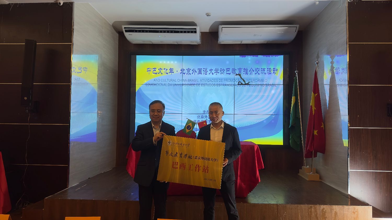 在与会嘉宾的共同见证下,北京外国语大学与圣保罗华助中心签署合作谅解备忘录,并举行“北外华文教育基地巴西工作站”授牌仪式。这标志着北外华文教育在巴西的本地化服务网络正式建立,将为当地华校提供师资培训、课程开发、升学指导等全方位支持。