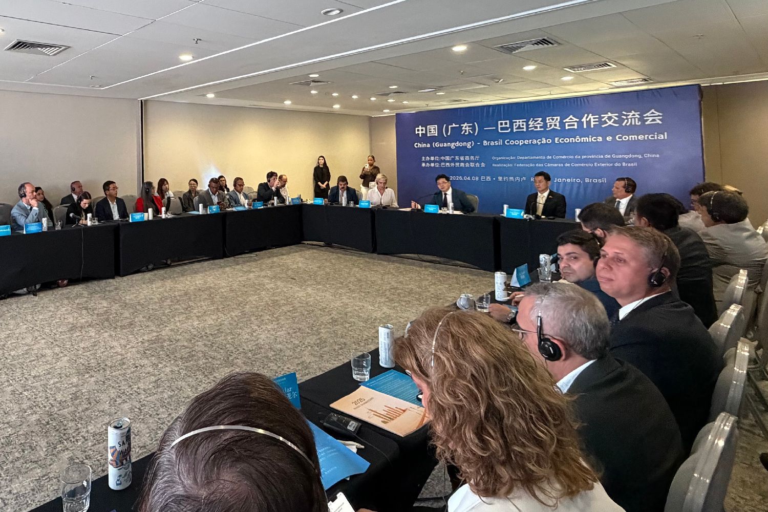 【南美侨报特约记者陈妤汎里约热内卢报道】“中国(广东)—巴西经贸合作交流会”于4月8日在里约热内卢举行。会议围绕深化中国广东省与巴西在经贸、投资、科技、绿色能源及食品等领域的合作展开。中国广东省商务厅厅长张劲松、巴西里约州经济发展、工业、商业和服务厅副厅长卡拉·莫内拉、中国驻里约热内卢总领事馆商务参赞敬艳辉、巴西外贸商会联合会主席阿代尔·卡尔内罗出席会议并致辞。十余位中巴企业家代表在会上发言,另有57家企业代表参会,就推动双边合作进行了深入交流。
