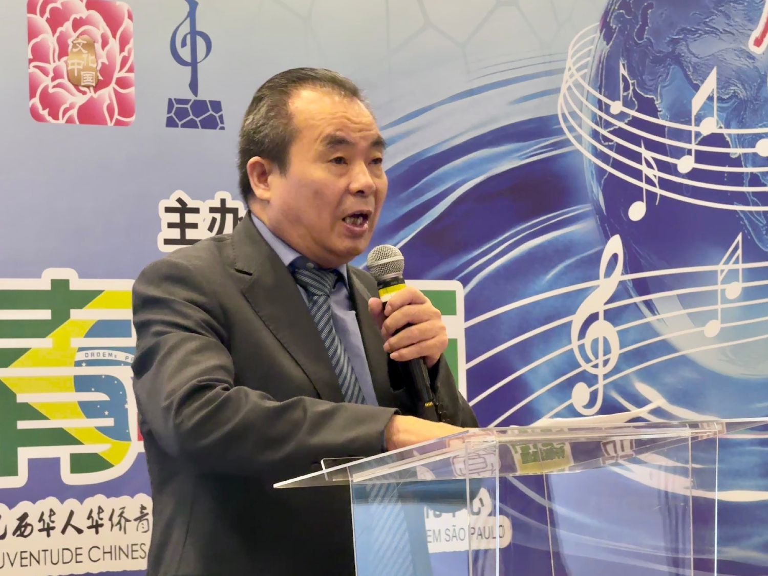 邱垚伟特别感谢圣保罗亚洲文化中心多年来为赛事的贡献,感谢中国驻圣保罗总领馆长期以来给予的大力支持,也感谢一直支持赛事的赞助商朋友们。他表示,正因为有各界的共同关心与支持,才有了这样一个充满活力与希望的舞台。他寄语所有参赛选手,希望大家在舞台上尽情展现风采,唱出自信、唱出热爱、唱出属于自己的精彩,因为无论成绩如何,能够站上舞台,本身就是成长、勇气和对中华文化真挚情感的体现。