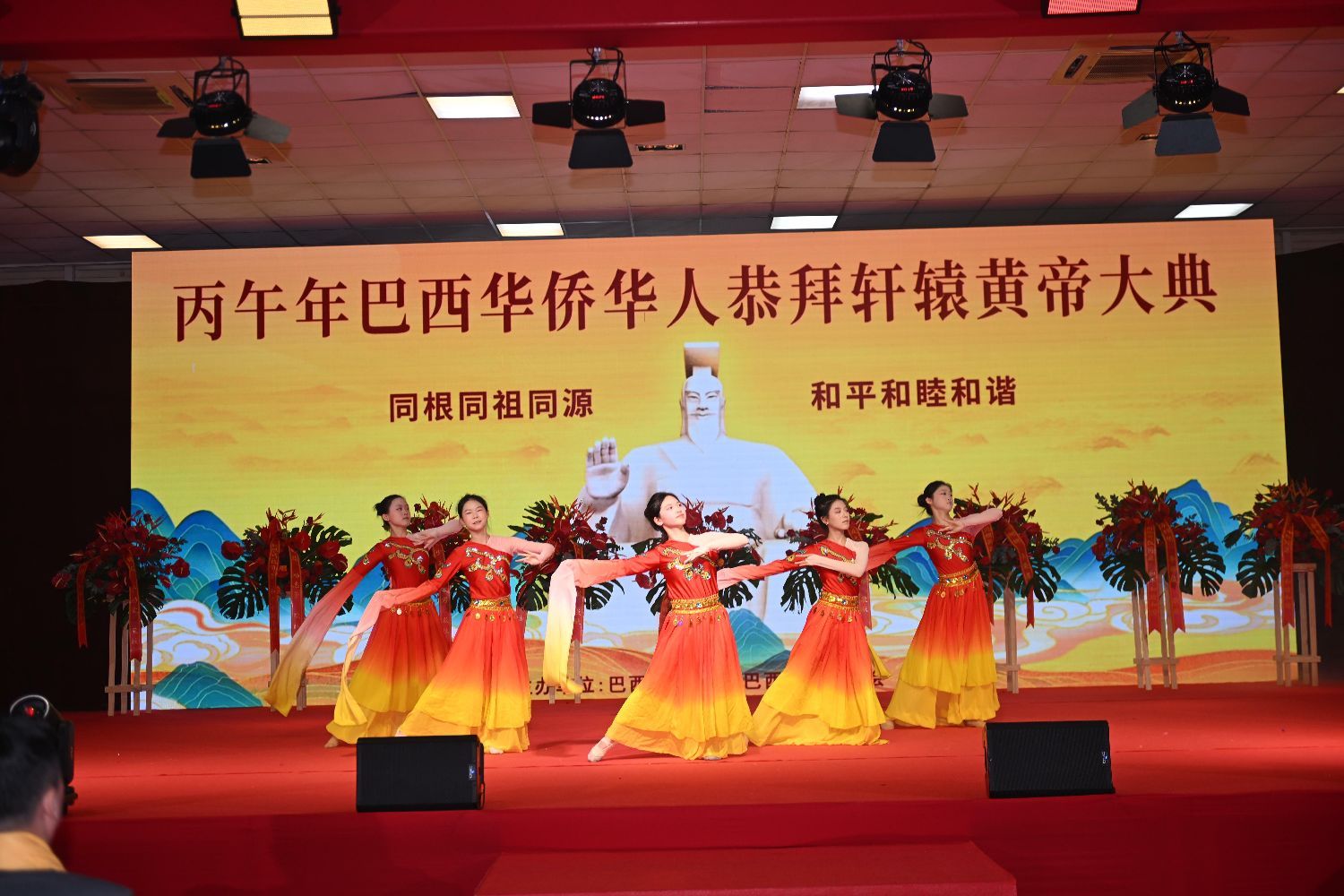 活动以“同根同祖同源,和平和睦和谐”为主题,依次进行舞龙舞狮、敬献花篮、净手上香、共拜始祖、恭读拜文、高唱颂歌、乐舞敬拜、祈福中华、天地人和九项仪程。巴西华人协会及各界侨团代表依次向黄帝像敬献花篮,整理缎带,三鞠躬,表达对始祖的敬仰与追思;嘉宾们盥手燃香,虔诚礼拜;著名歌唱家王燕文领唱《黄帝颂》,巴西侨界歌手与30名华侨华人子女共同合唱,歌声激昂;侨界艺术团以祈福舞蹈献礼始祖,舞姿优雅。“祈福中华”环节,嘉宾们在祈福牌上写下深切寄语,表达美好祝愿;“天地人和”环节,30名青少年齐声背诵《千字文》选段,古筝轻音相伴,寓意中华文化薪火相传、生生不息。