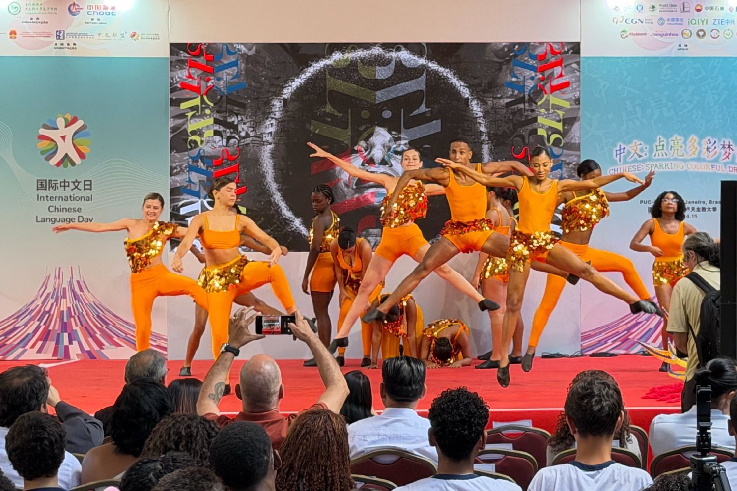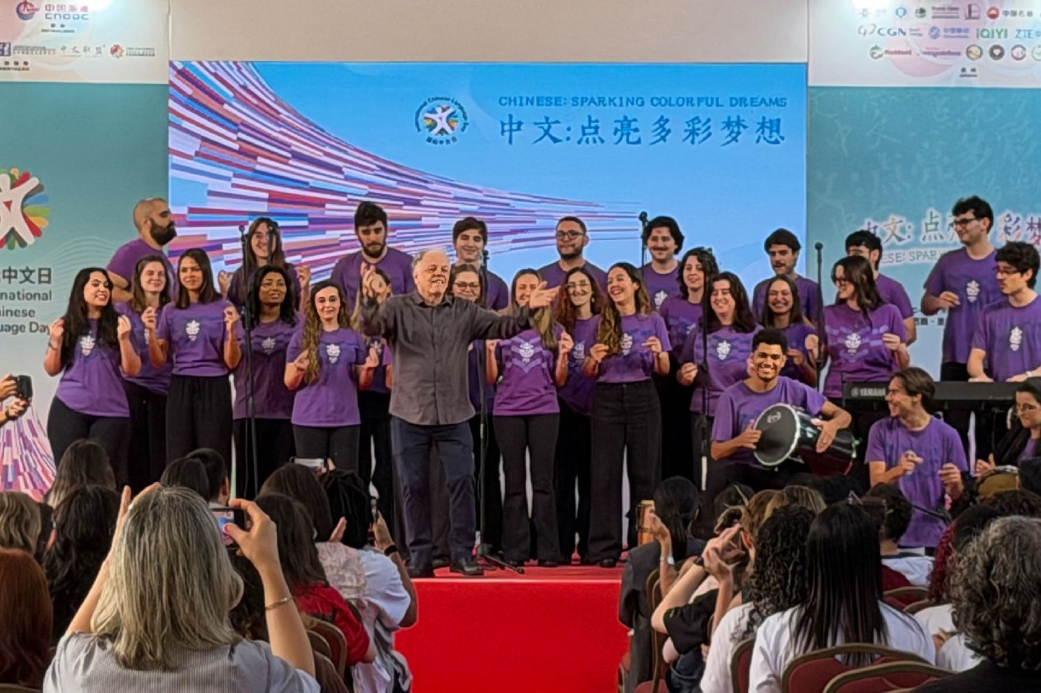 随后,文艺表演轮番上演,现场气氛热烈。来自中巴两国的表演者带来了歌曲、舞蹈与器乐演奏等节目,包括独唱《星辰大海》、中国舞《茉莉花》与巴西舞蹈《至永恒的ELZA》、中国民乐演奏以及中文歌曲联唱《童年花》《如愿》《夜空中最亮的星》等,展现了中巴文化交融的独特魅力;同时,武术表演与合唱团也为现场增添了浓厚的互动氛围。
