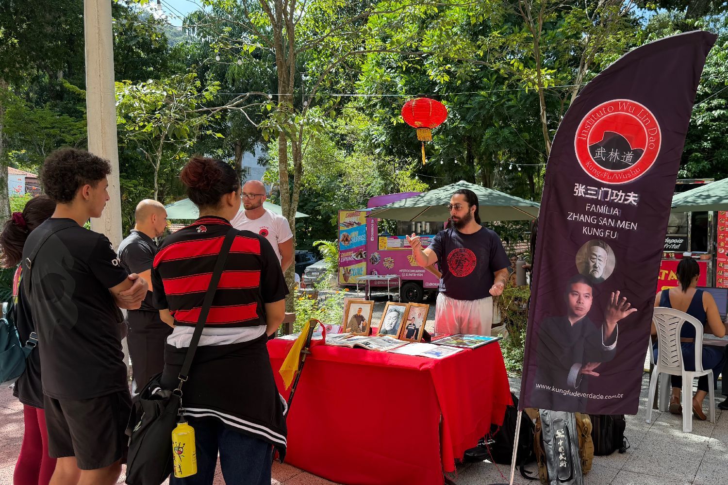 除舞台演出外,现场还同步开展中国文化展示与体验活动,设置了十个主题展台,涵盖书法、武术、汉服体验、茶艺展示、中医体验及中国美食品鉴等内容。还有企业展区展示了中海石油、国网、爱奇艺、中石化、中兴、中广核等中资机构在巴西的发展情况与合作成果,介绍相关产业领域与企业文化。
