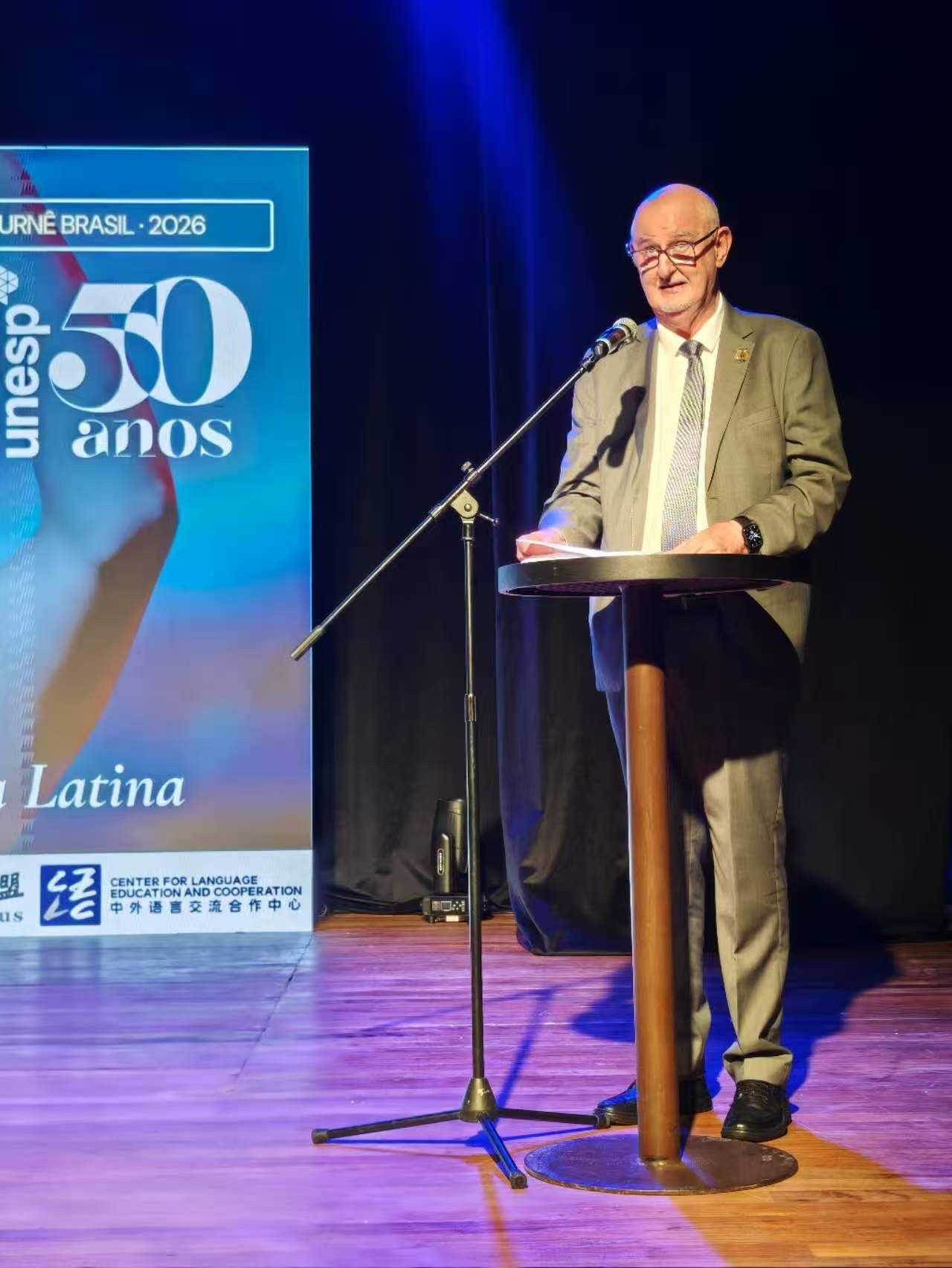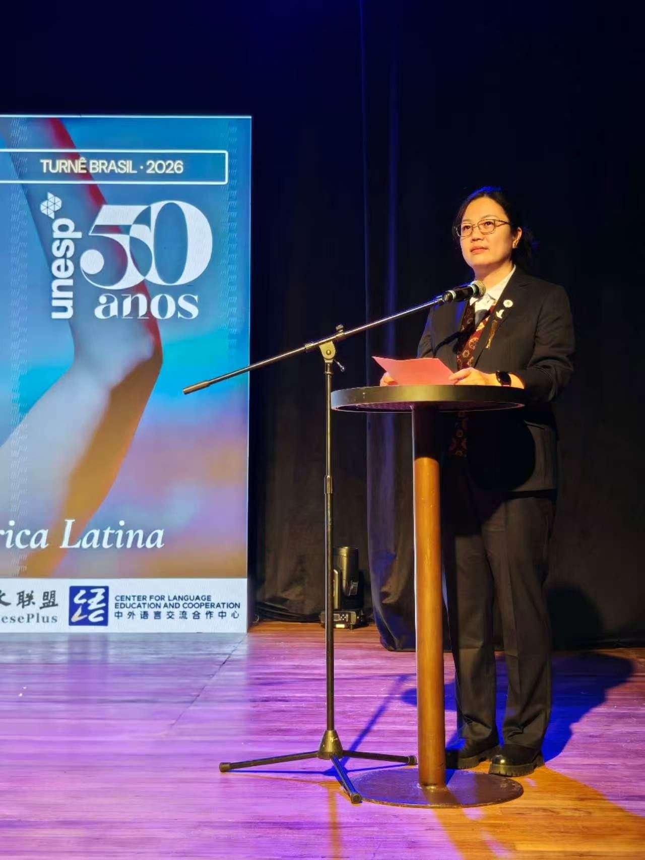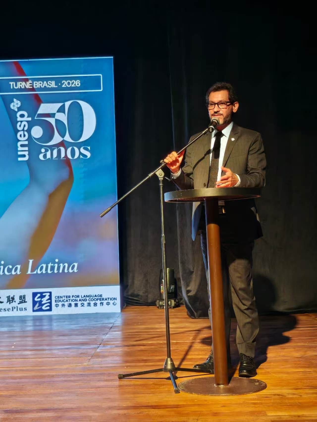 孙立东表示,近年来,巴西中国社会文化研究中心持续推动中巴文化互动,在巴西多地成功举办系列文化演出与交流活动,收获了积极社会反响。他表示,文化与语言交流是增进两国民心相通的重要纽带,本次展演恰逢圣保罗州立大学建校50周年,具备特殊的象征意义,既有助于加深两国人民间的理解与友谊,也将进一步夯实中巴关系发展的坚实基础。