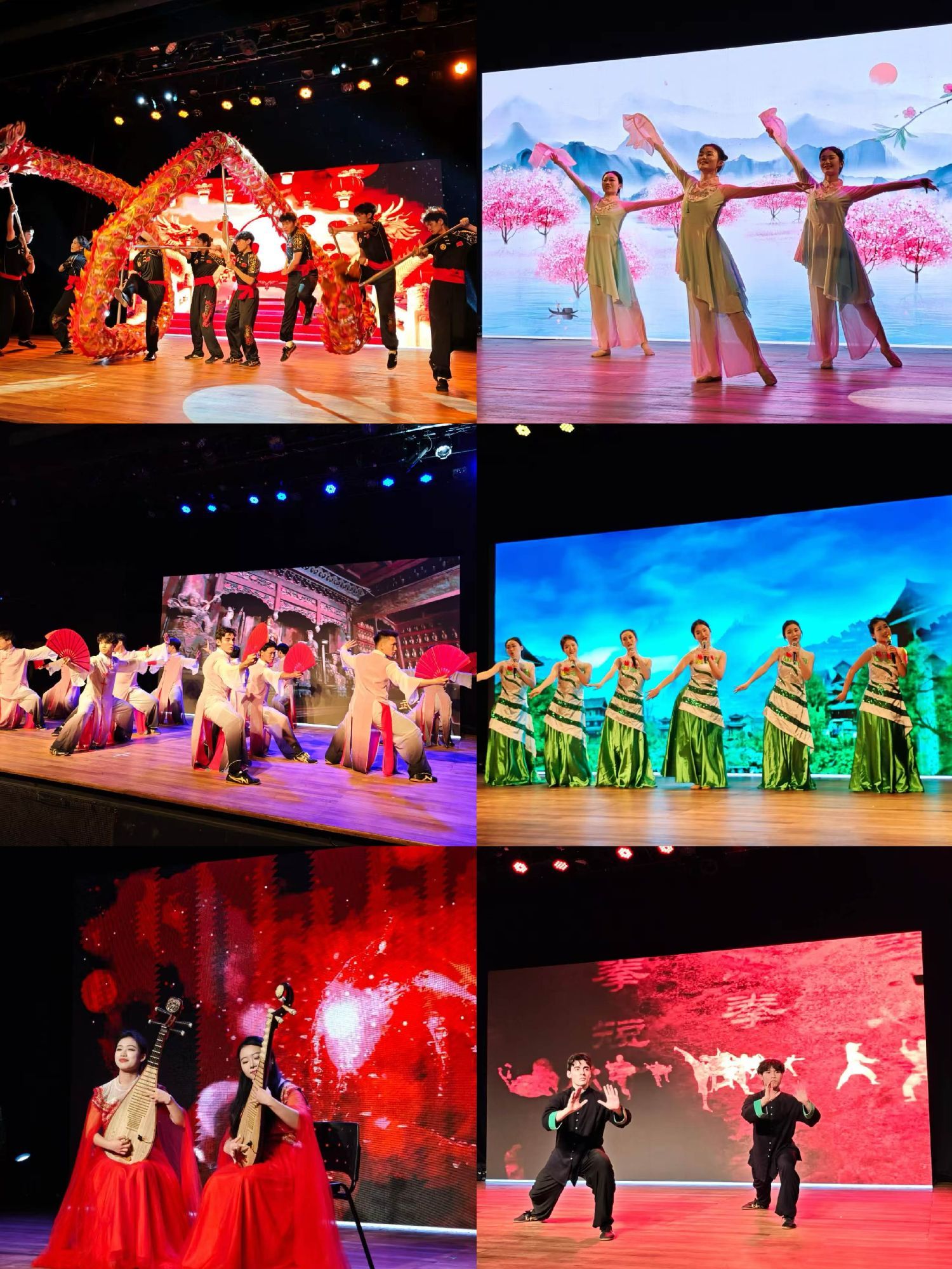 4月14日晚,首场展演在巴西圣保罗正式拉开帷幕,现场气氛热烈、座无虚席。中国驻圣保罗副总领事张希、圣保罗州立大学常务副校长塞萨尔·马丁斯、湖北大学副校长张冬卉、巴西中国社会文化研究中心主席托马斯·罗特别代表孙立冬,以及圣保罗州立大学孔子学院师生、当地民众近300人共同出席观看。展演融合多元艺术形式,涵盖舞龙舞狮、传统武术、太极扇、民乐演奏、情景舞蹈以及巴西本土歌曲等,其中舞龙舞狮环节还特别邀请圣保罗当地少儿团体同台演绎,实现中巴青少年零距离文化互动,赢得现场观众阵阵掌声。