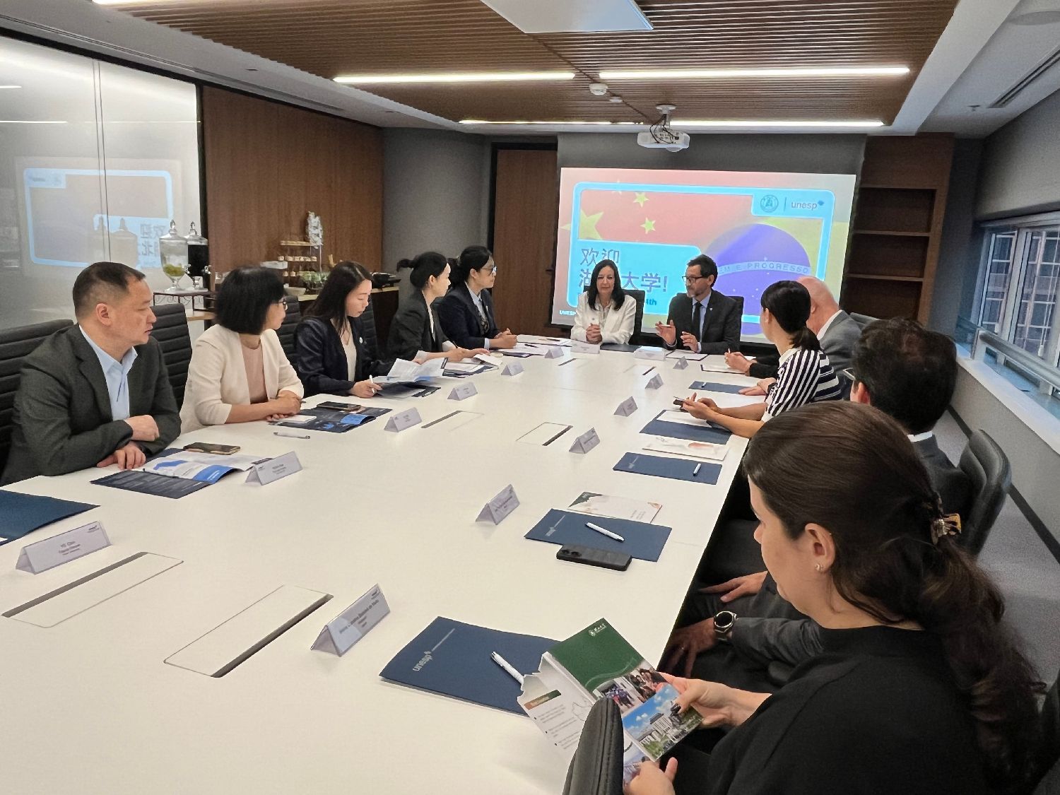 中国驻巴西大使馆教育参赞陈默,中国驻圣保罗总领馆总领事余鹏、副总领事张希,巴西教育部特别国际事务顾问费利佩·杜特拉·德·卡瓦略·海姆布格尔(Felipe Dutra de Carvalho Heimburger),圣保罗州立大学校长马伊莎·弗兰(Maysa Furlan)、常务副校长塞萨尔·马丁斯(Cesar Martins)等会见代表代表团。我校党委宣传部、国际交流与合作处、师范学院、公共管理学院等负责人陪同出访。(湖北大学投稿)