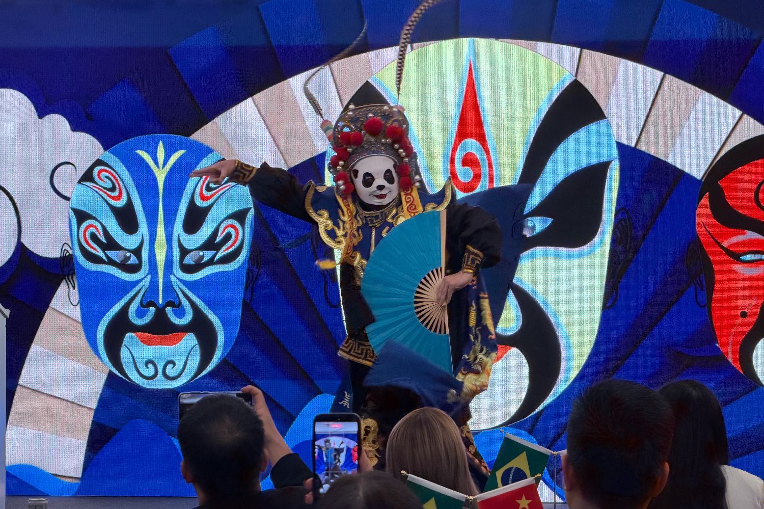 活动现场外场还设置了特色展台,集中展示绵阳文创产品、羌绣等具有地域文化特色的展品,吸引众多嘉宾驻足参观体验。文艺表演环节同样精彩纷呈,既有极具中国传统文化魅力的川剧变脸表演,也有富有民族风情的藏族歌曲《白马情歌》演唱,充分展现了绵阳多元厚重的文化底蕴,进一步增进了与会嘉宾对中国文化和绵阳城市魅力的了解。
