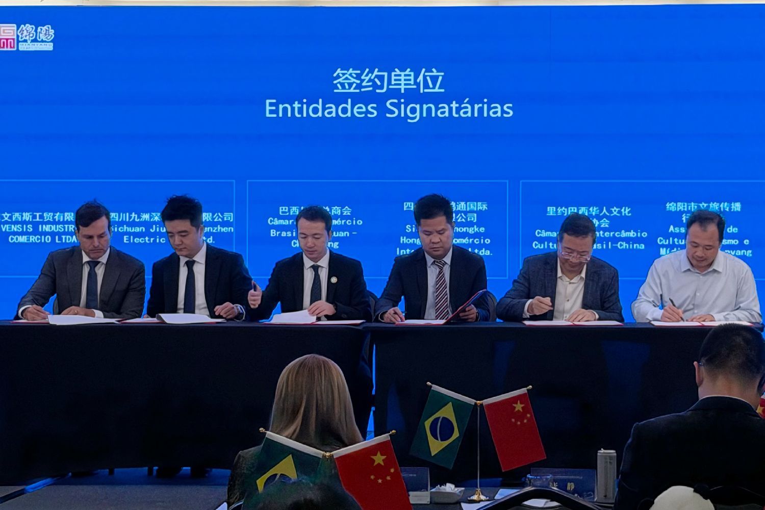活动最后举行合作项目签约仪式,维文西斯工贸有限公司与四川九洲投资控股集团有限公司、巴西川渝总商会与四川中科宏通国际贸易有限公司、里约巴西华人文化交流协会与绵阳市文旅传播行业协会分别签署合作协议,进一步推动双方在经贸投资、人文交流和产业合作等领域实现务实合作。