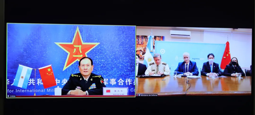 10月21日,中国国务委员兼国防部长魏凤和同阿根廷国防部长塔亚纳视频通话。图源:中国国防部“国防部发布”微信公众号