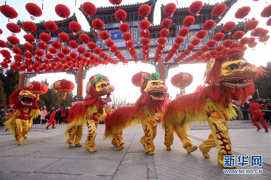 资料图:庙会上的舞狮表演。新华网