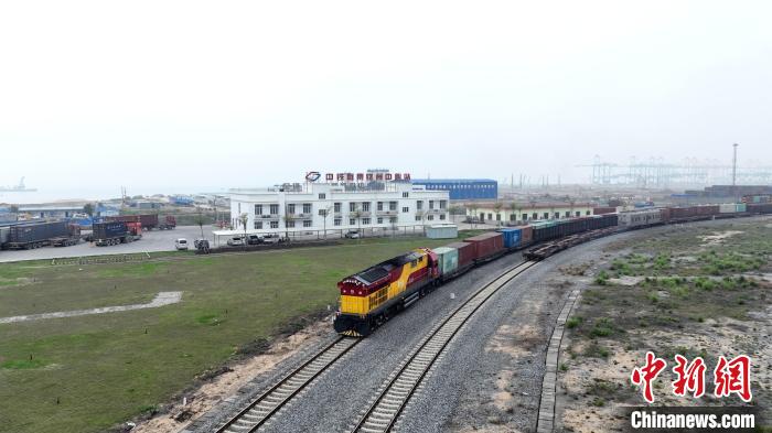 装载印度原糖的西部陆海新通道班列近日从钦州港东站驶出。中新网