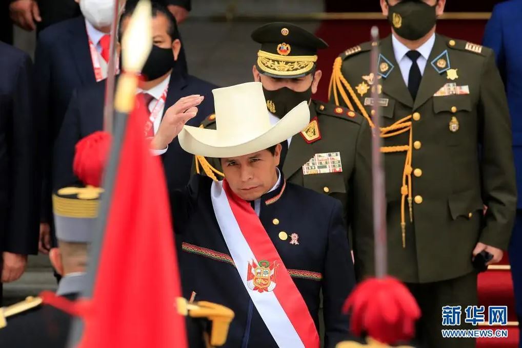 2021年7月,卡斯蒂略在秘鲁首都利马宣誓就职总统。新华网