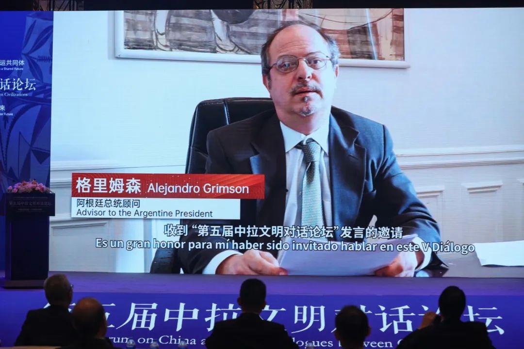 阿根廷总统顾问格里姆森在视频演讲中表示,中拉各国在经贸、科学、文化、外交、人文等多个领域的合作不断深化,进一步加深了中拉双方的理解与互信。他强调,中国和拉美已经从交流阶段转入合作阶段,面向共同的未来,只有加强文明对话,增进理解与互信,才能促进多元文化发展,构建更加开放、包容、普惠的美好世界。