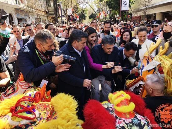与会领导共同画龙点睛,为美食节及中秋庙会揭幕。阿根廷华人网