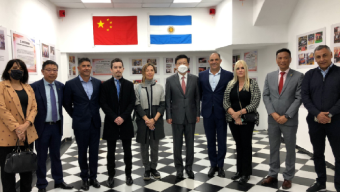 中国驻阿根廷使馆图文报道,“旅阿华侨华人侨史展”是在庆祝中国与阿根廷建交50周年和中阿友好合作年框架下,由中国驻阿根廷使馆联合旅阿主要侨团共同举办。展览包括前言、“跨洋逐梦落地生根”、“守望相助和谐侨社”、“中华文化龙的传人”、“四海皆兄弟两岸一家亲”、“心系故园桑梓情深”、“合作抗疫共克时艰”、“布市名片—中国城”7个图文版块,以及“侨说历史群英争艳”视频版块和实物版块,共300张图片、17段视频、80余件(套)实物。阿根廷著名华裔主持人林文正用中西双语介绍了展览的主要内容,嘉宾们饶有兴趣地听讲,不时驻足仔细观看,相互交流。