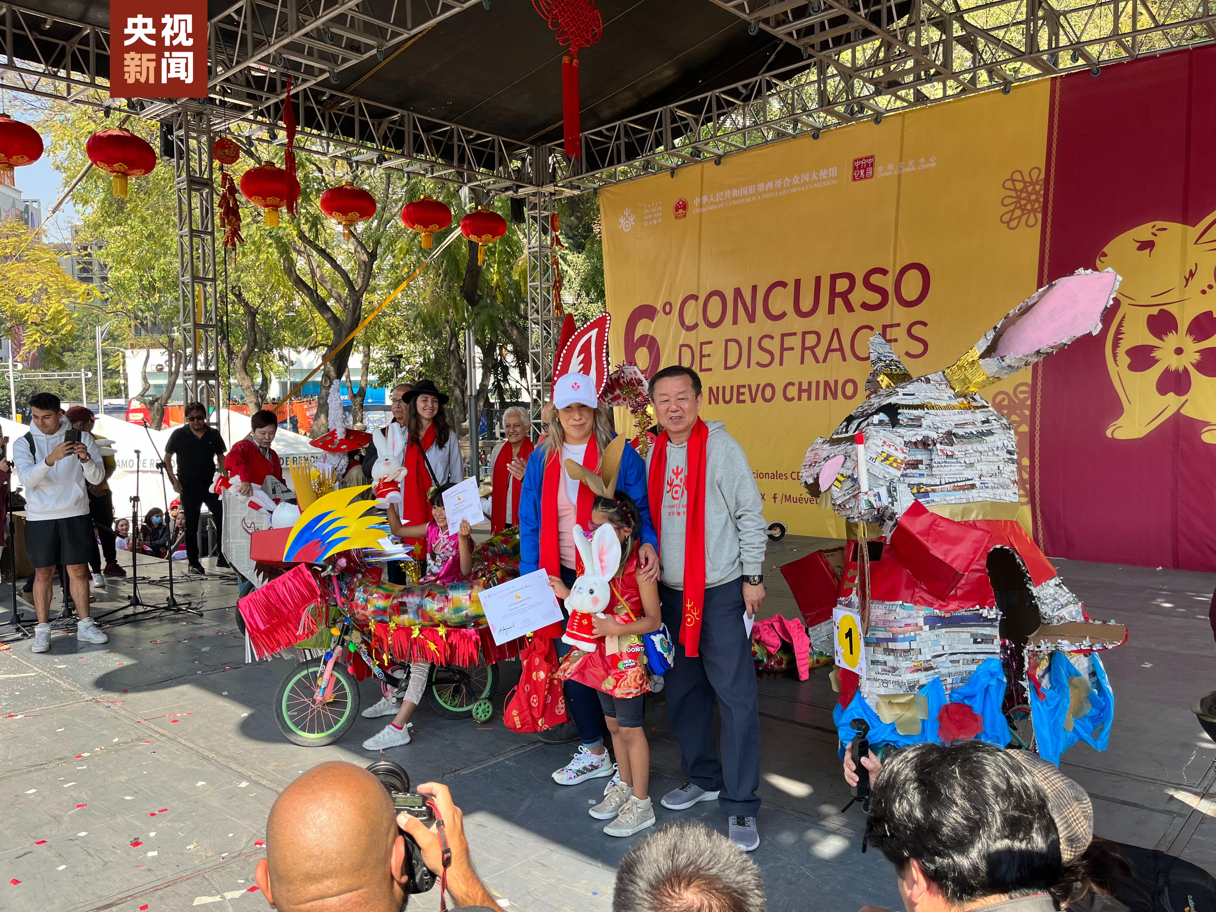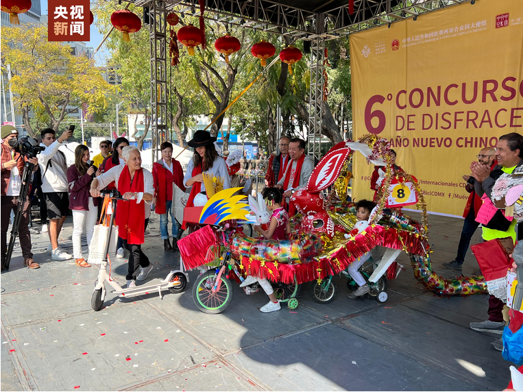 当地时间1月22日上午,中国驻墨西哥大使馆、墨西哥中国文化中心与墨城市政府在首都墨西哥城的地标建筑天使独立纪念碑环岛,联合主办了2023“欢乐春节”第六届兔年“自行车生肖装饰大赛”。现场共约5000名陆续到来的当地民众参加和观看了比赛。