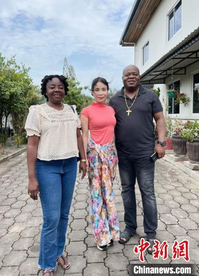 大年初一,苏里南国民议会议长马里纳斯·贝(右一)携夫人来访。中为本文作者陈少兰。中新网