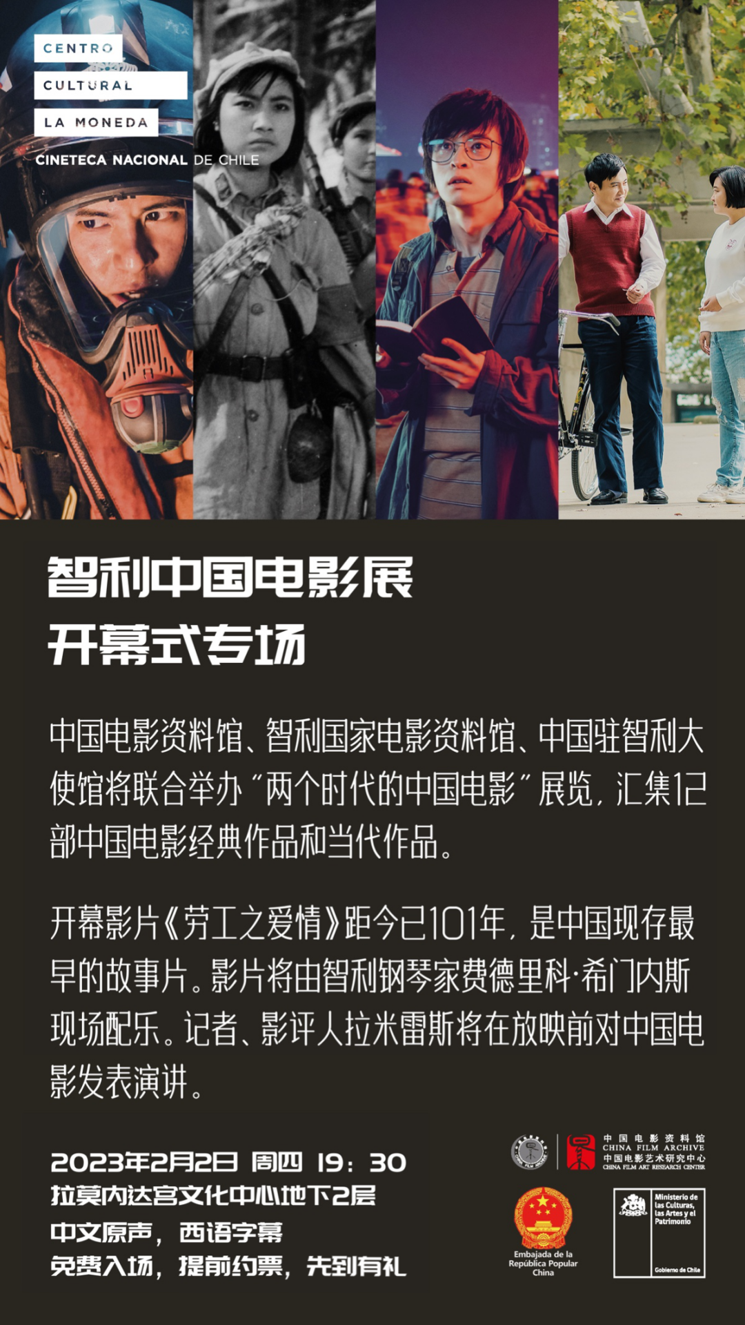中国驻智利使馆微信公众号消息,中国电影资料馆、智利国家电影资料馆、中国驻智利大使馆将联合举办“两个时代的中国电影”展览,汇集12部中国电影经典作品和当代作品。中国电影展将于2月2日至15日在智利举行。