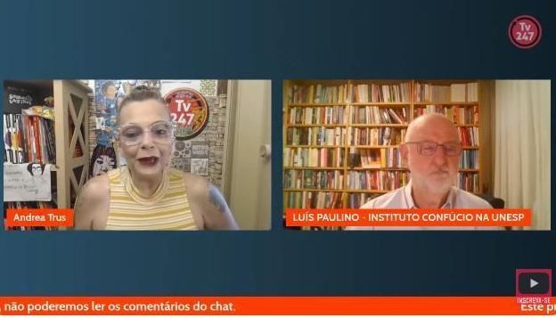 圣保罗州立大学孔子学院巴方院长保利诺(右)接受巴西最大新闻门户网站之一“Brasil247”视频专访。中新网
