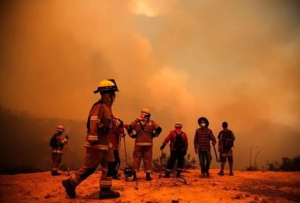 智利位于南美洲,时值夏季,热浪高温、湿度低和大风等不利天气条件增加灭火难度。