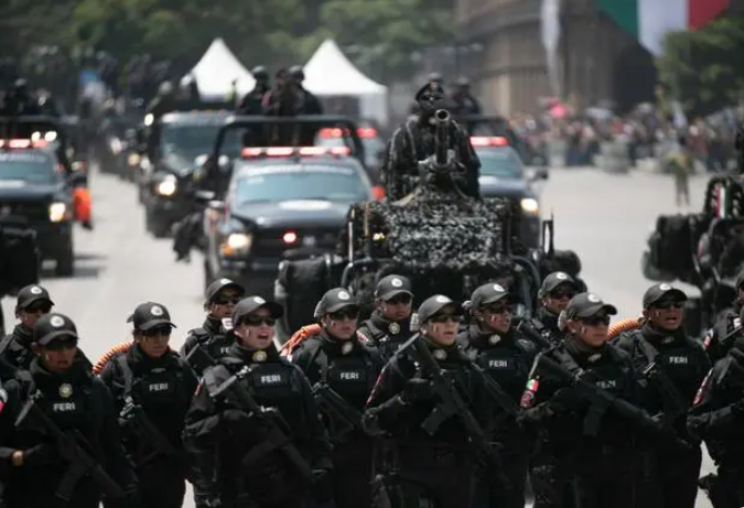 9月16日,在墨西哥首都墨西哥城,士兵参加独立日阅兵。新华社